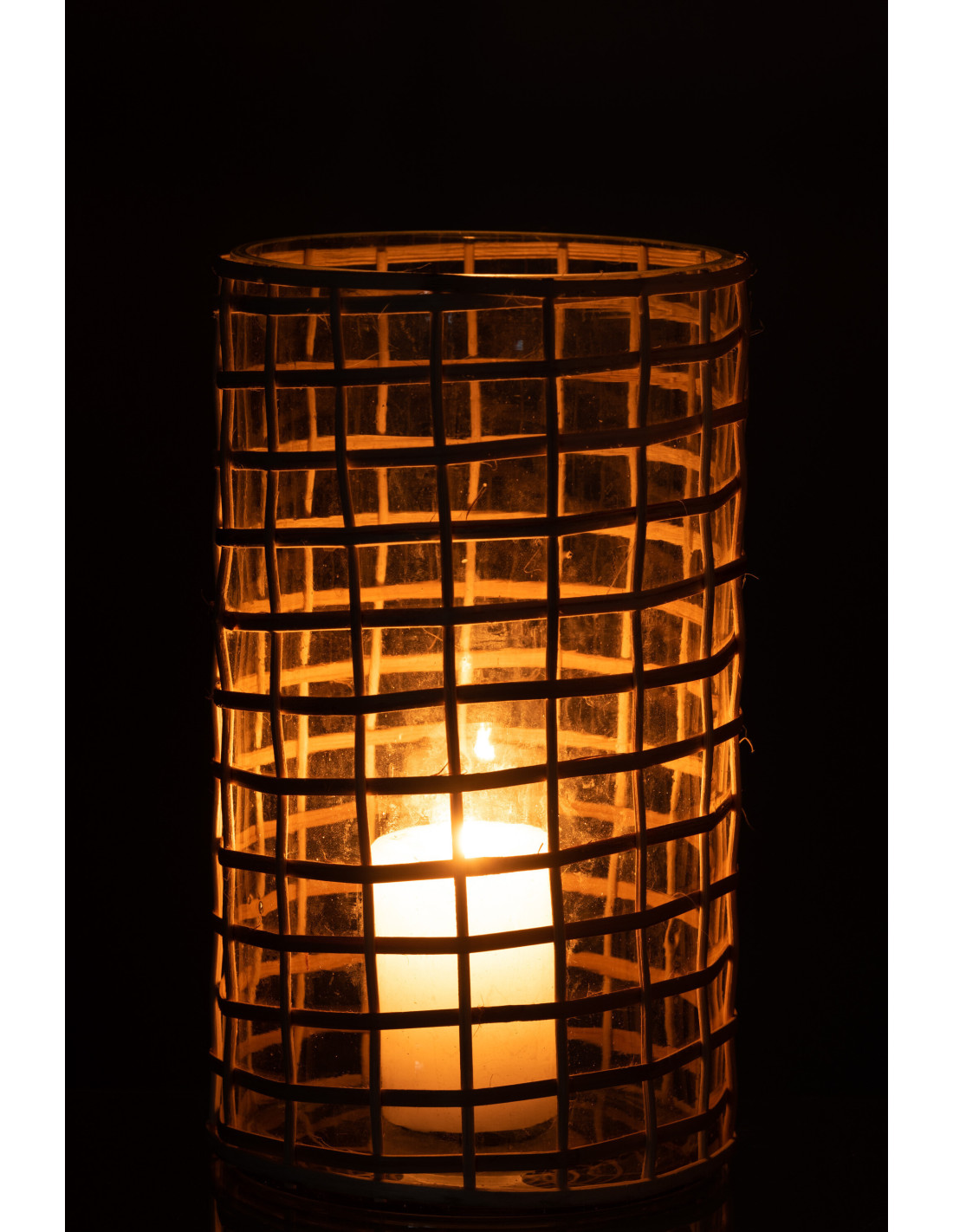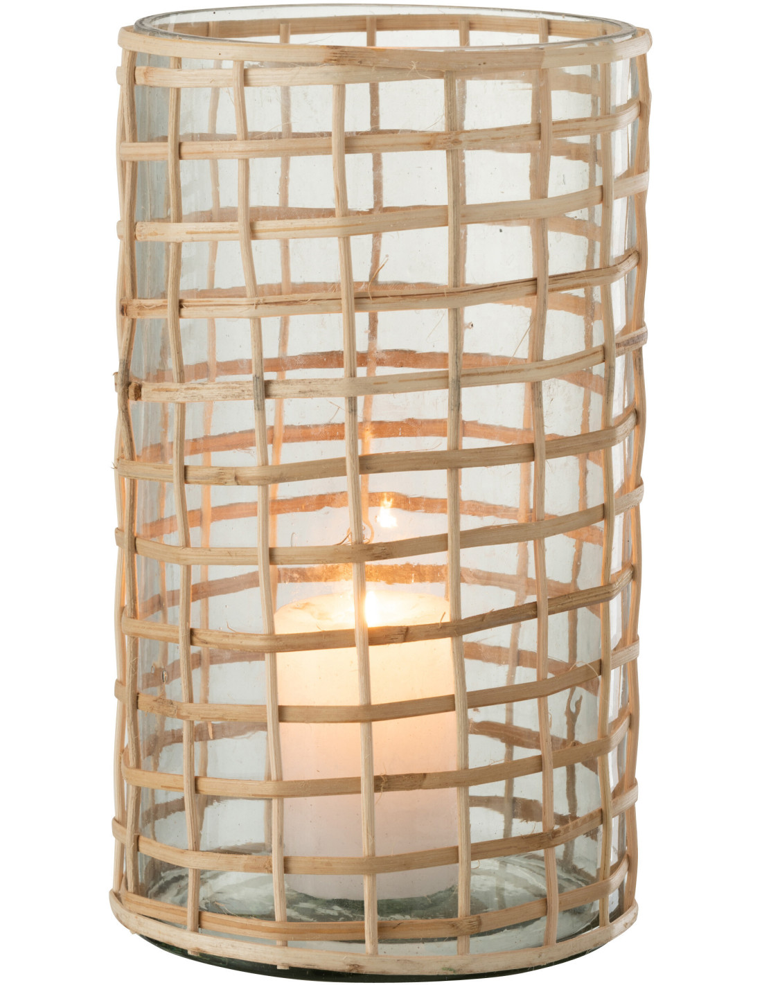Photophore vintage XL Diamètre 15 cm en Verre Transparent Rotin Naturel Violette