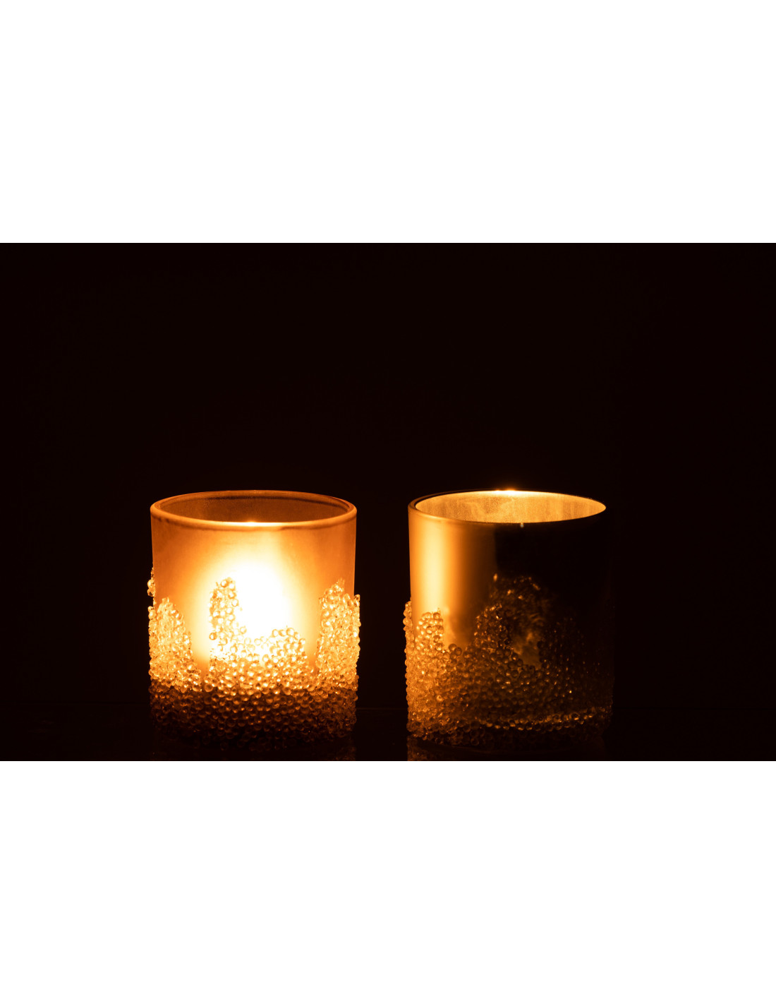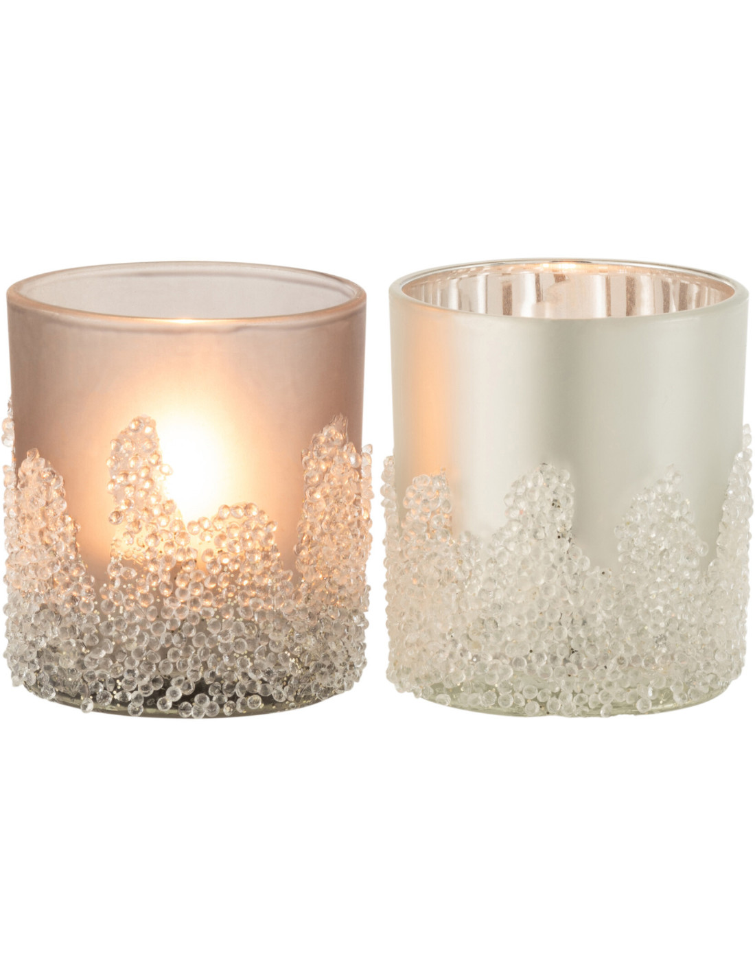 Ces photophores transforment la flamme en une lumière diffuse et enveloppante. L’effet givré du verre filtre l'intensité lumineuse pour créer une atmosphère douce, idéale pour des moments calmes et apaisants.