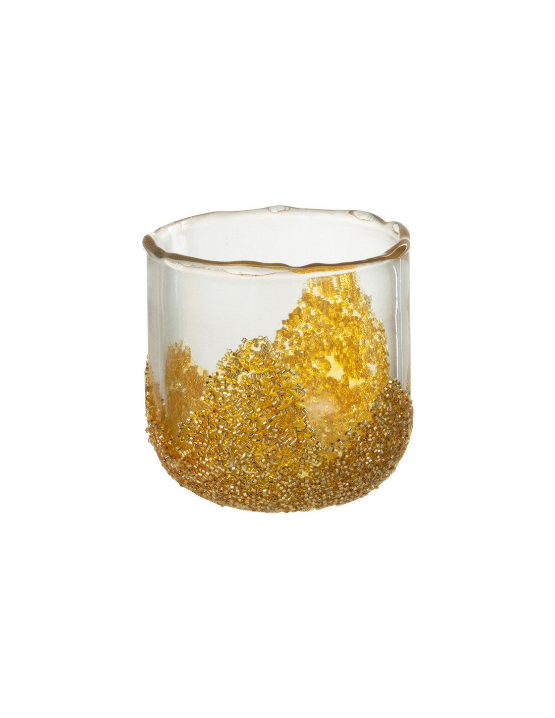 PIVEX - Photophore en verre avec strass dorés D8 cm