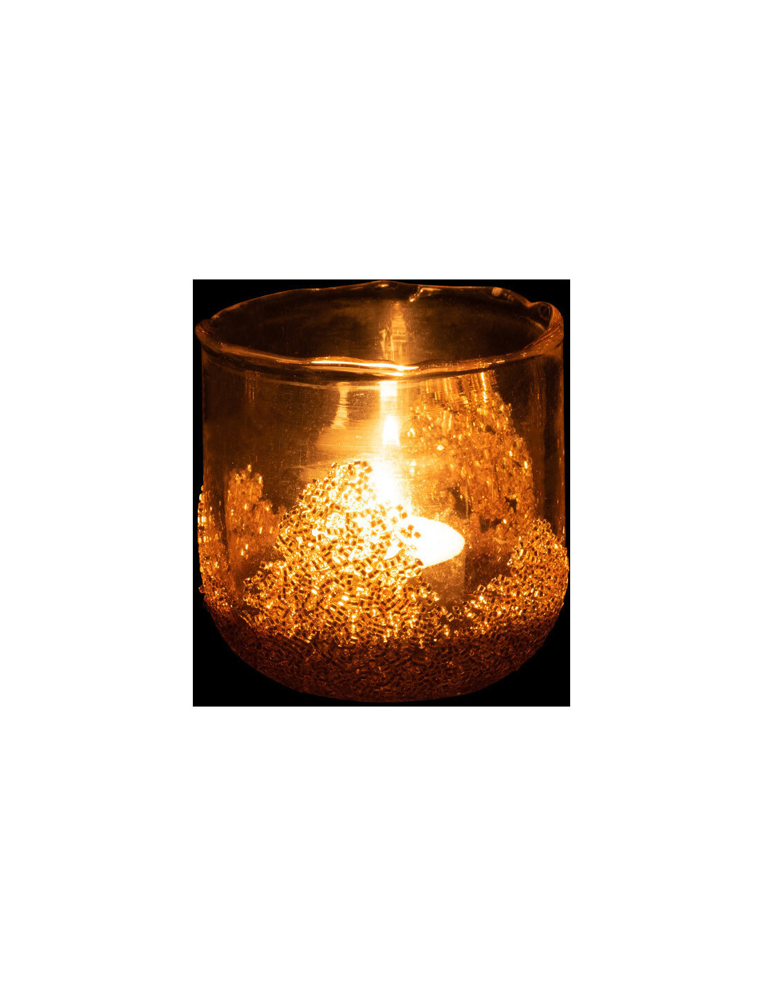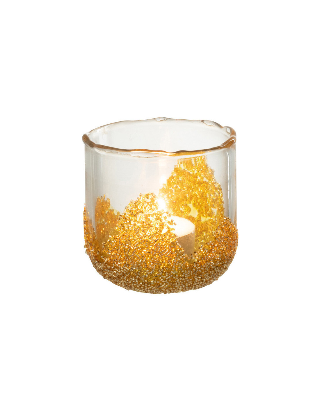 Photophore en verre avec strass dorés D8 cm