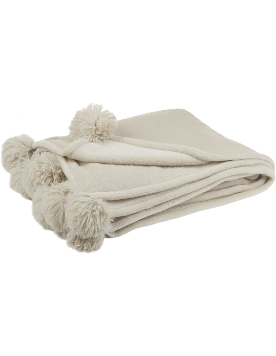 Plaid 130x170 Sweetness en Polyester Beige avec pompons