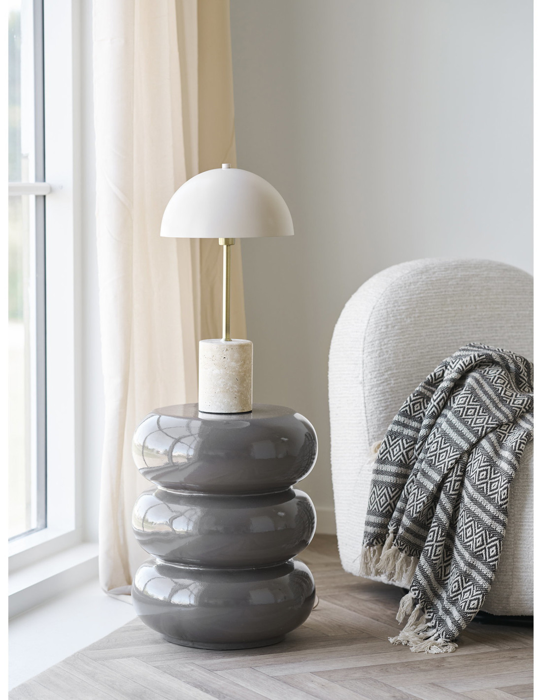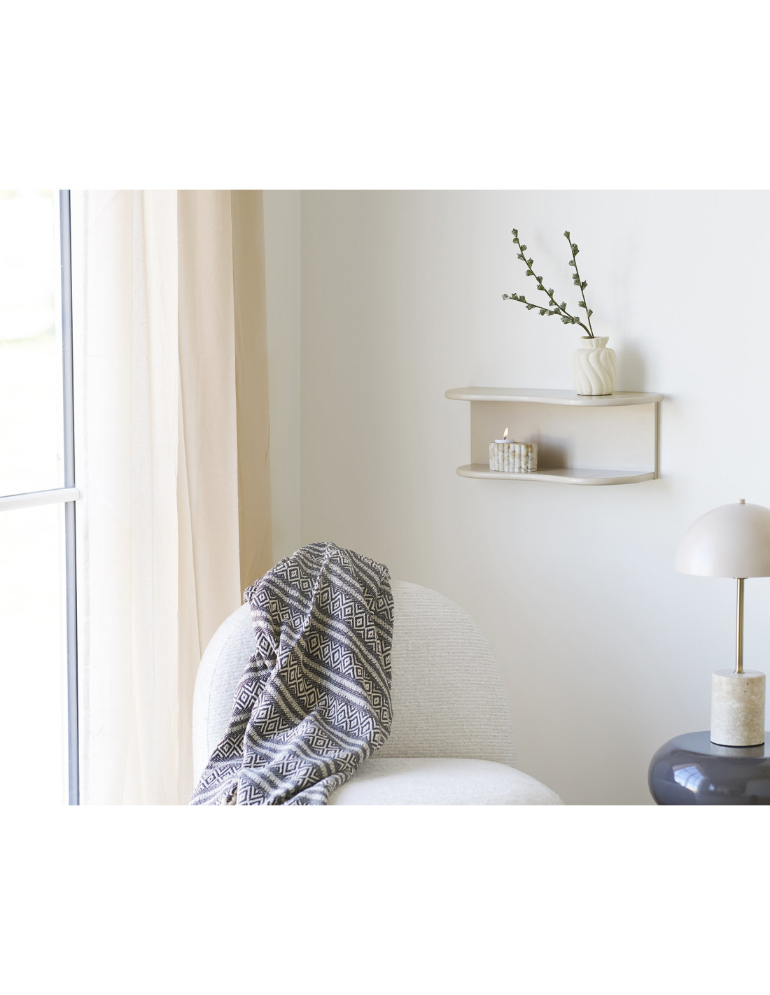 Il peut aussi être combiné avec d'autres textiles plus unis pour créer un jeu de superpositions maîtrisé. Une manière simple de composer une ambiance cohérente sans multiplier les éléments.