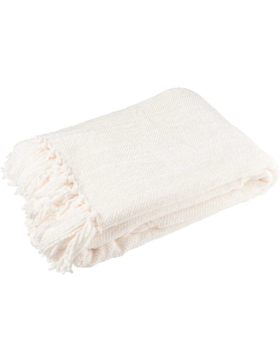 Plaid chenille 130x170 en Tissu Blanc Avec pompons Caterpilli