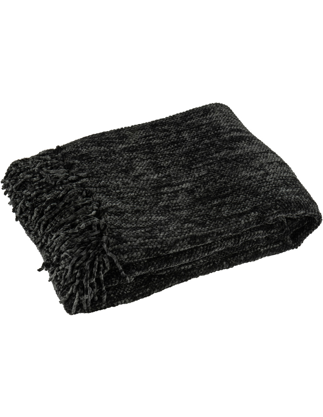 Plaid chenille 130x170 en Tissu Noir Avec pompons Caterpilli - 1