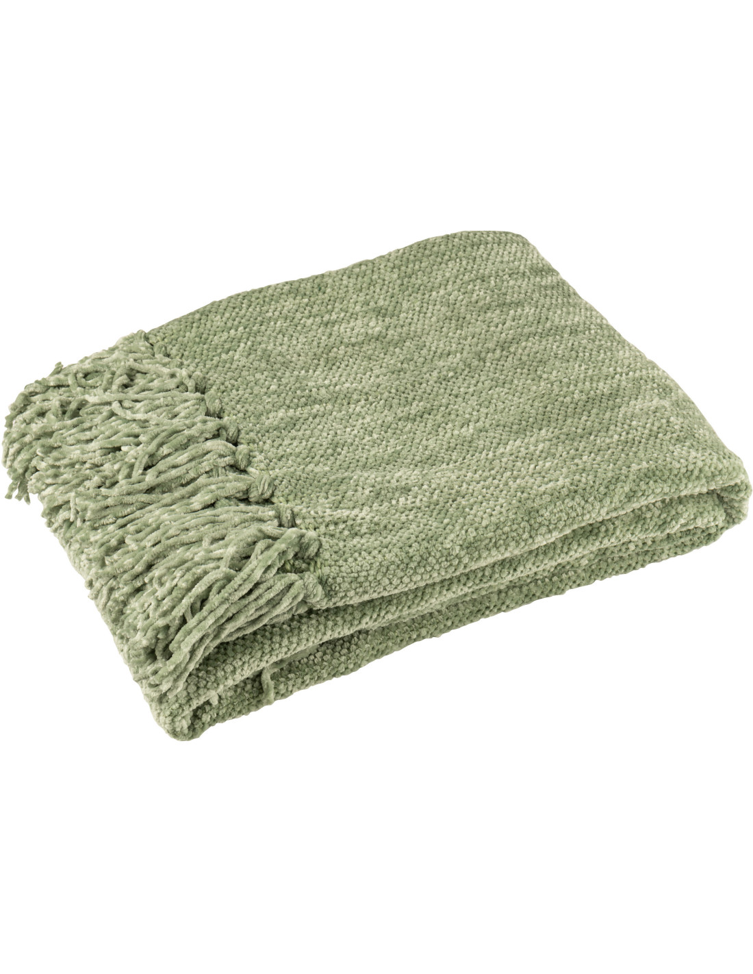 Plaid chenille 130x170 en Tissu Vert mousse Avec pompons Caterpilli