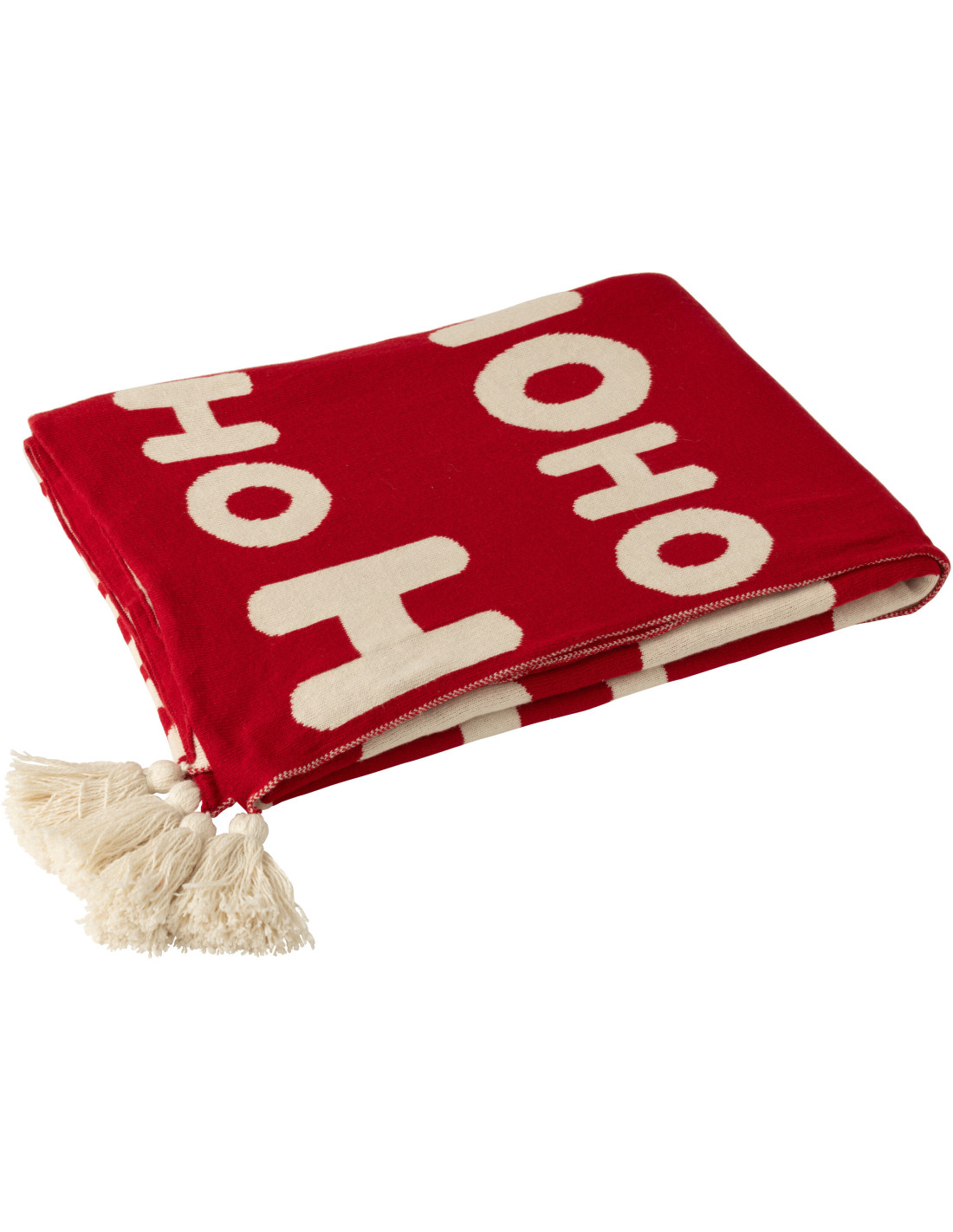 Plaid de Noël 130x170 en Tissu Rouge Blanc Avec pompons Hohoho - 1