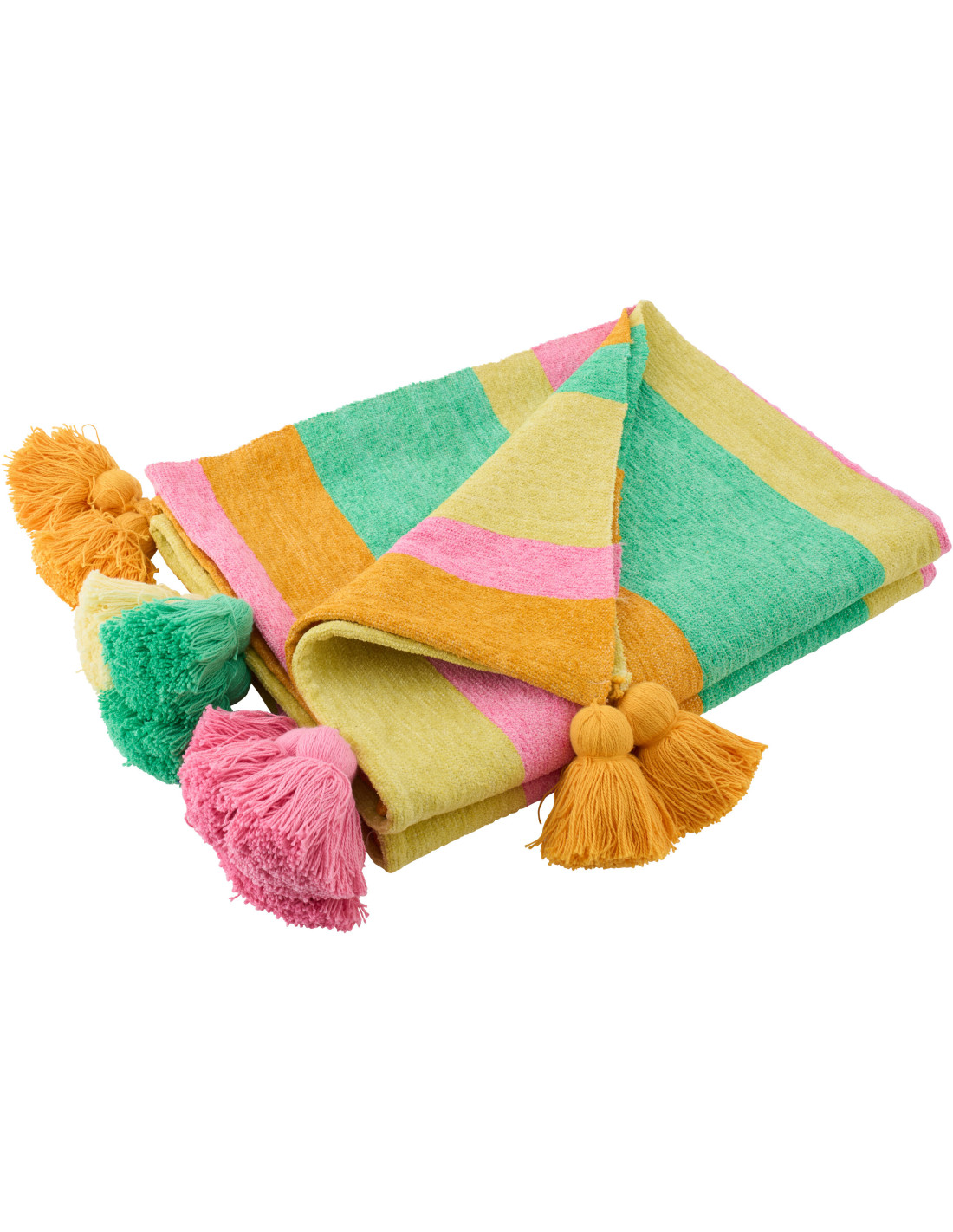 Plaid dopamine tropical 130x180 Tissu Multicolore Avec pompons Motif rayures Flamenco