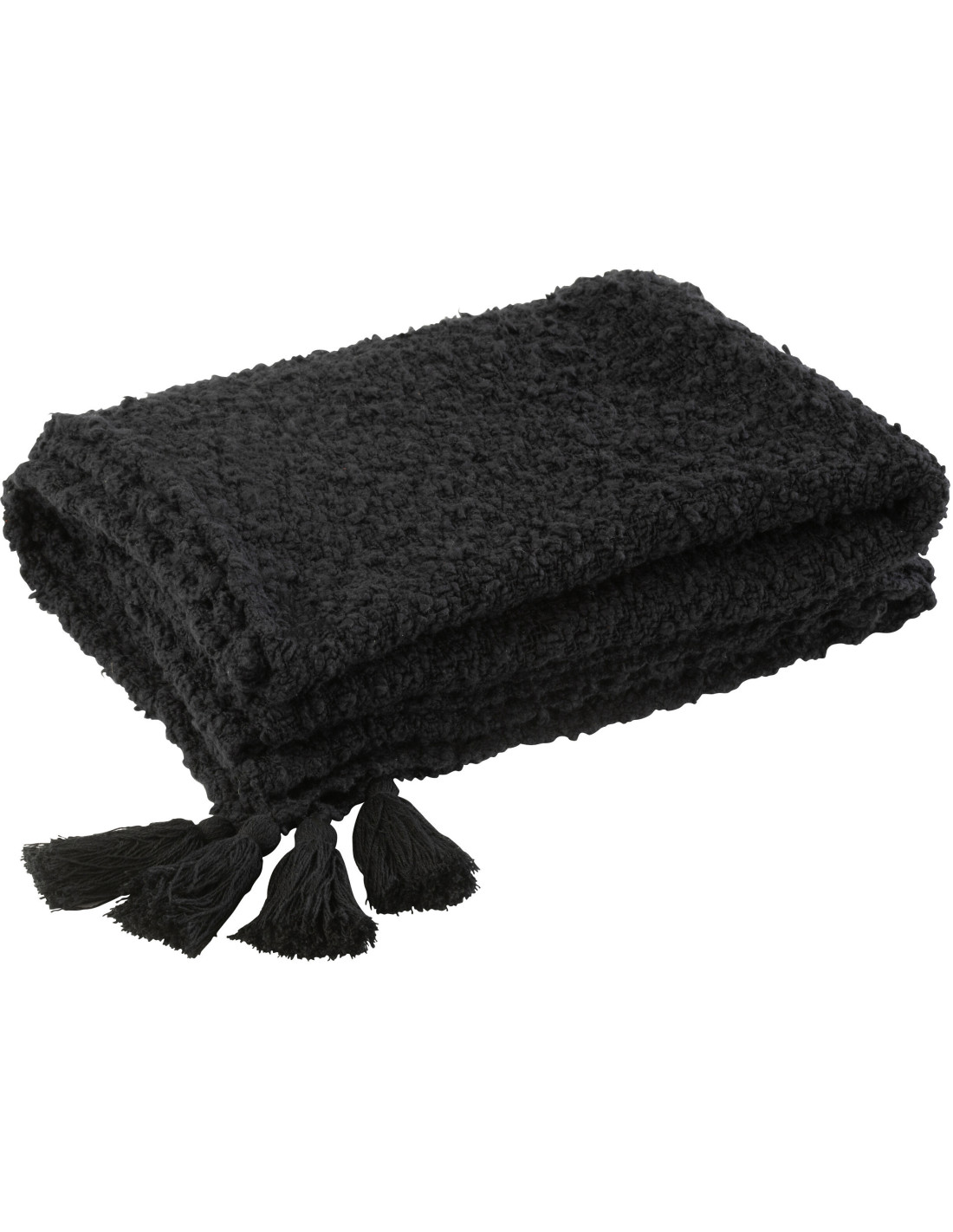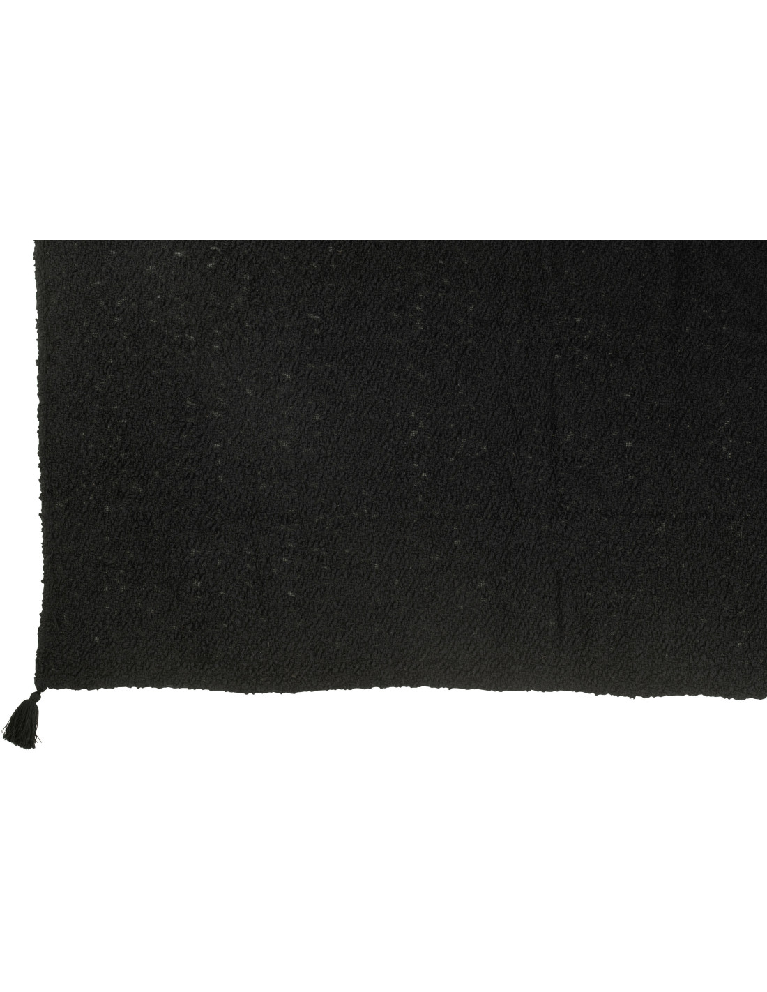 Plaid doux chaud pompons 130x180 en Coton Noir Bouclette Lovey