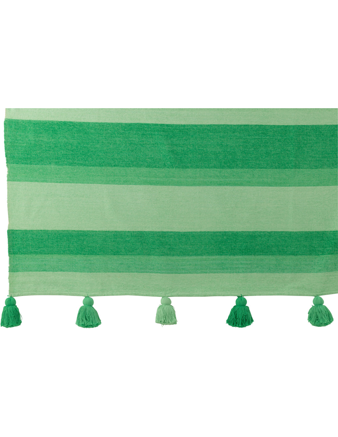 Plaid moderne 130x180 en Coton Vert Avec pompons Motif lignes Tazi - 1