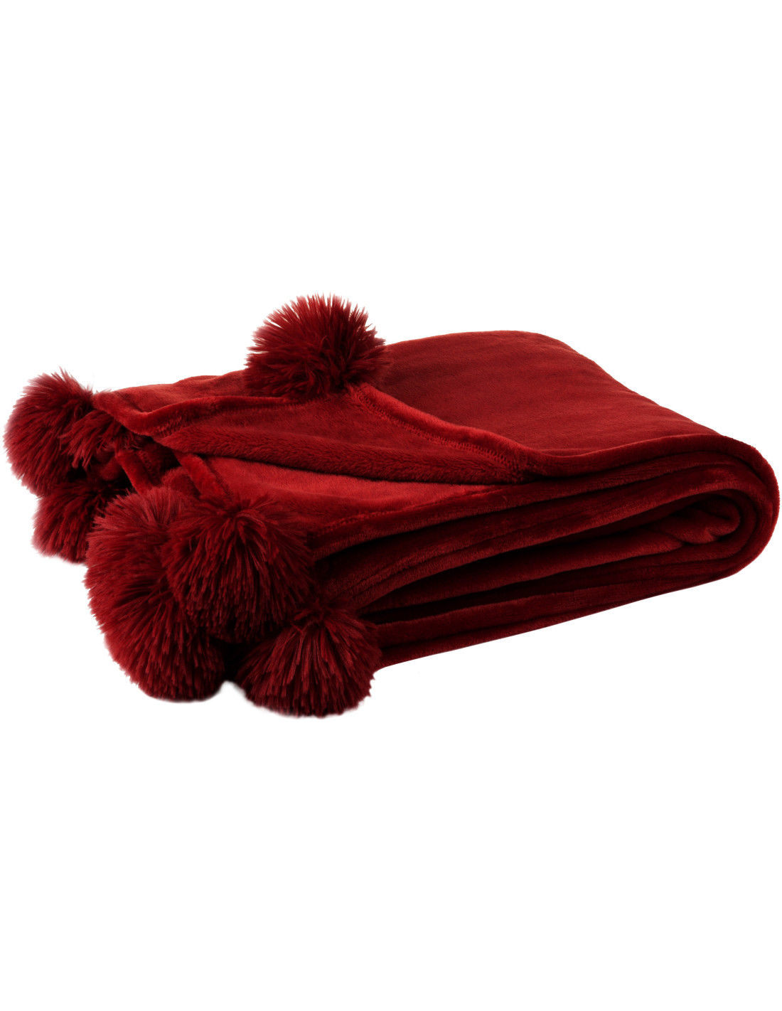 Plaid original 170x130 en Tissu Rouge Avec pompons Sweetness - 1