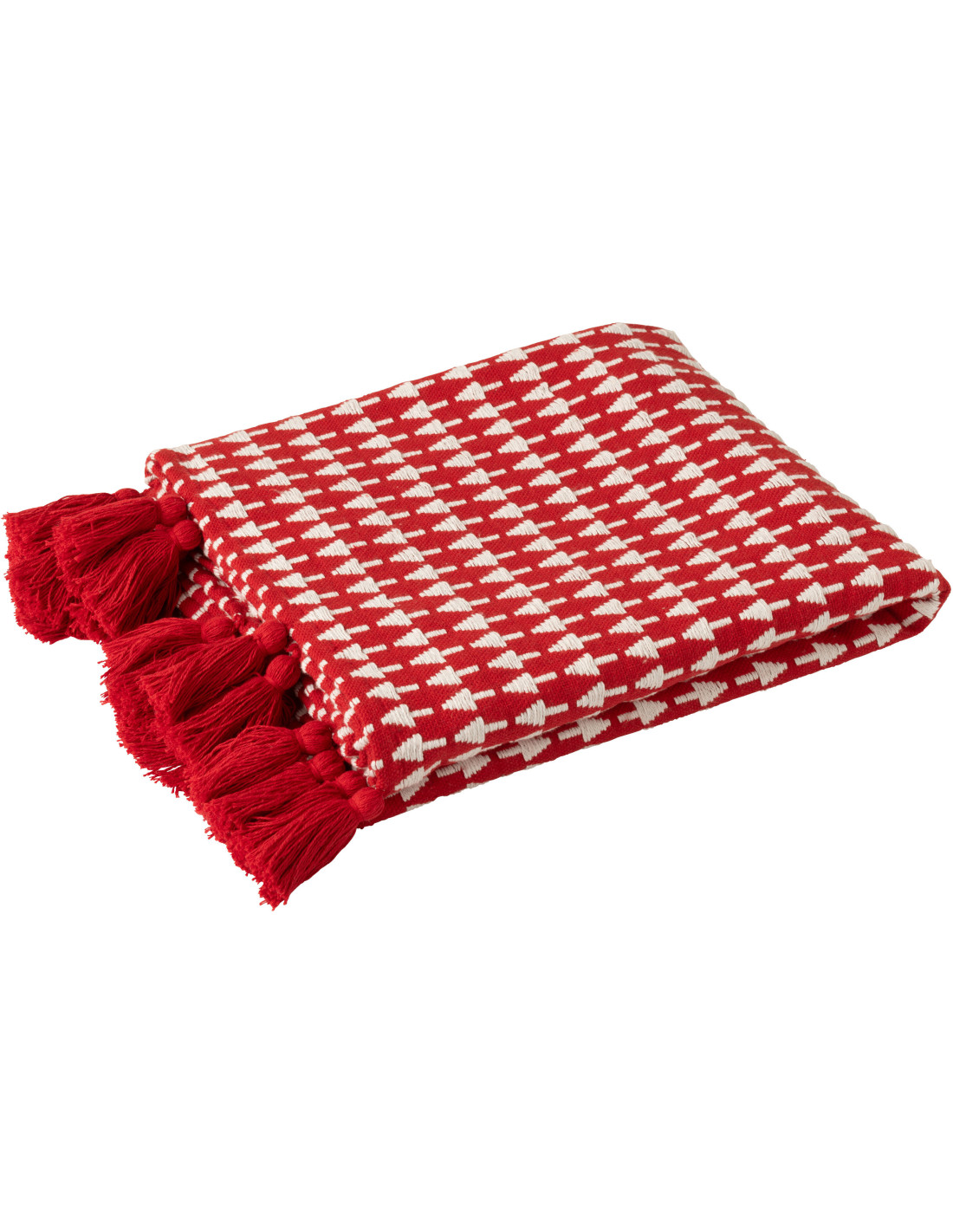 Plaid original moderne 130x180 en Coton Rouge Blanc Avec pompons Motif sapins de Noël Nordora