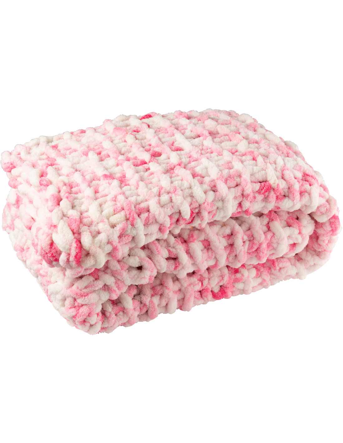 Plaid Tricot chaud 130x170 en Tissu Rose Blanc Motif tricoté Knitty
