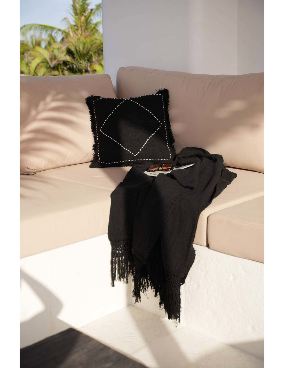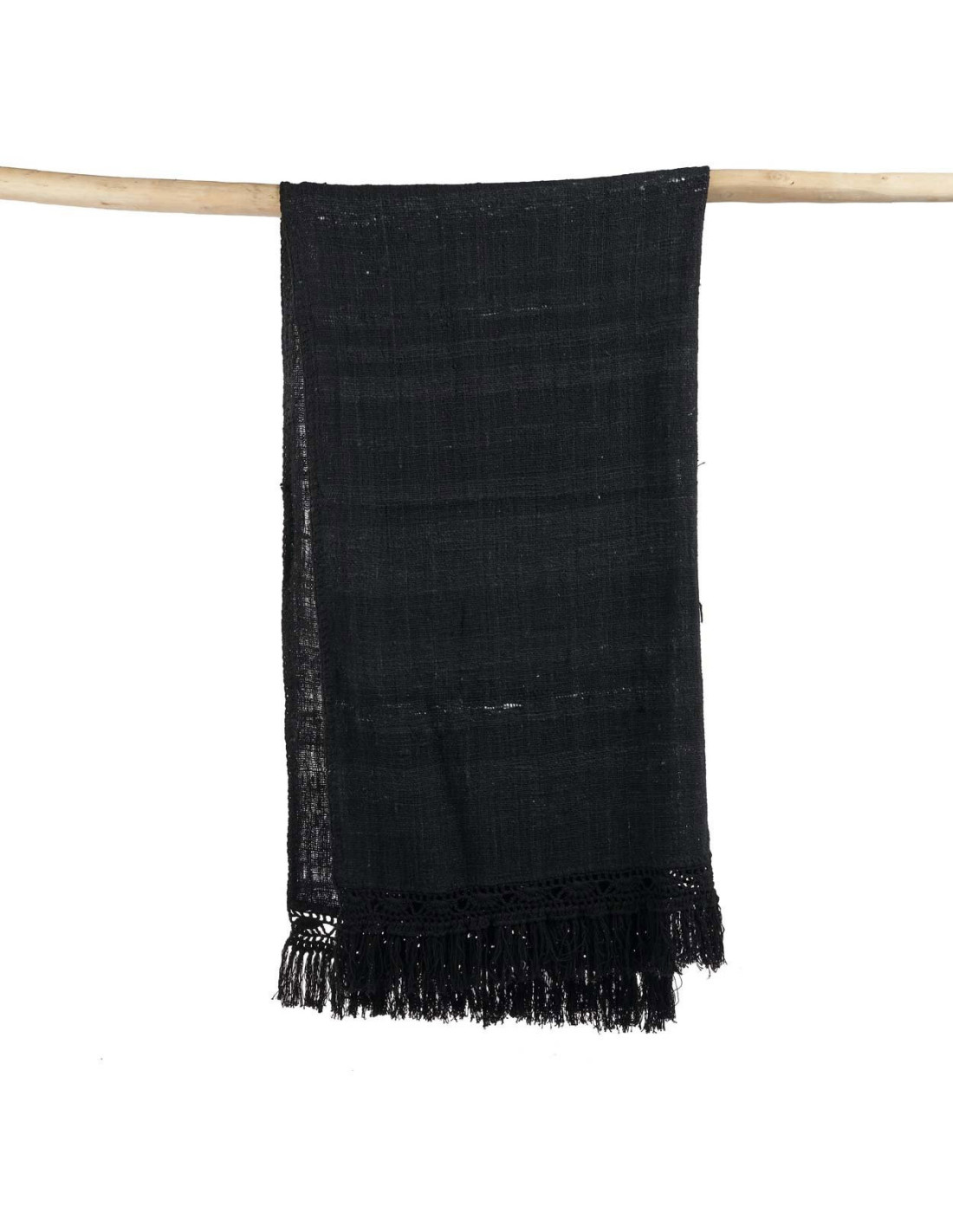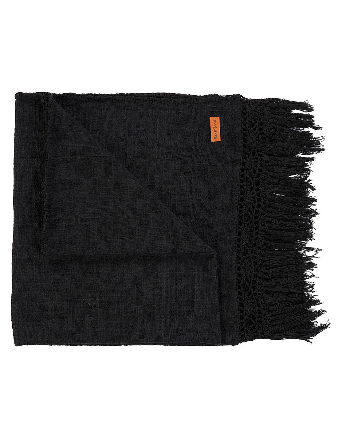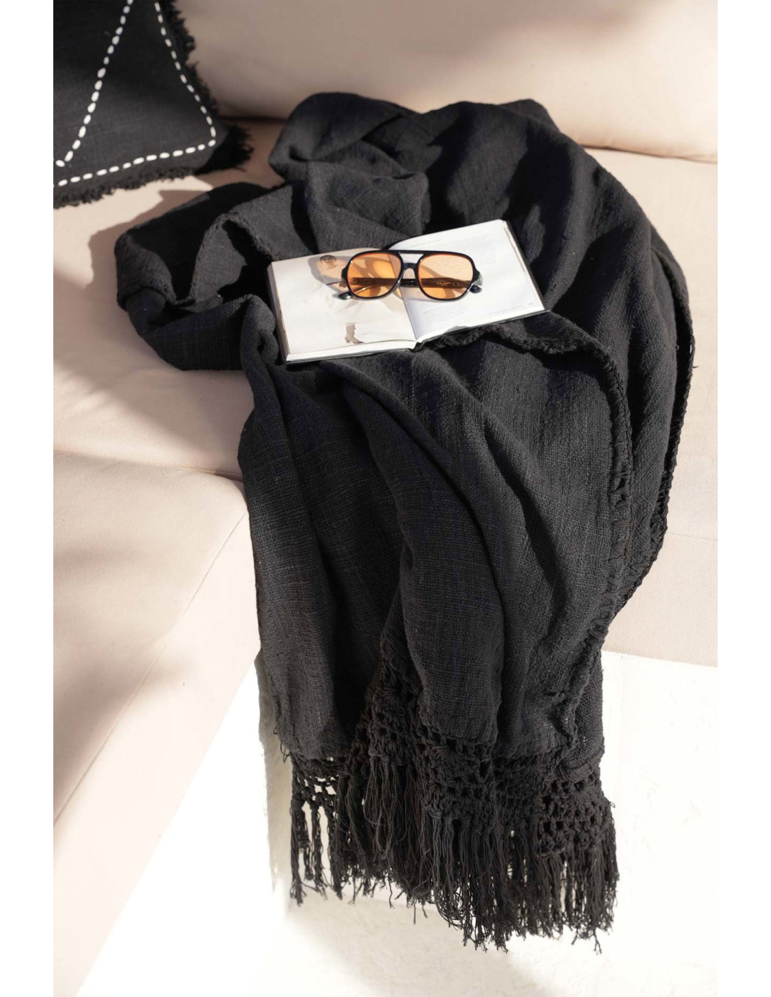 Plaid XXL original Bohème chic 260x122 en Coton Noir Avec franges The Gypsy
