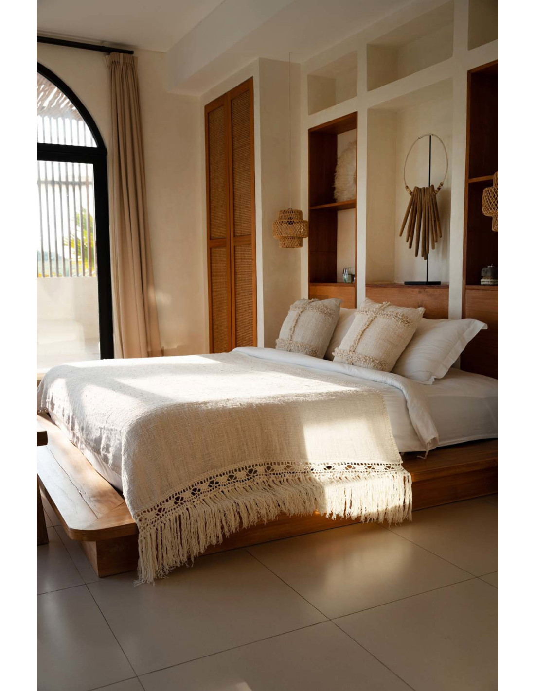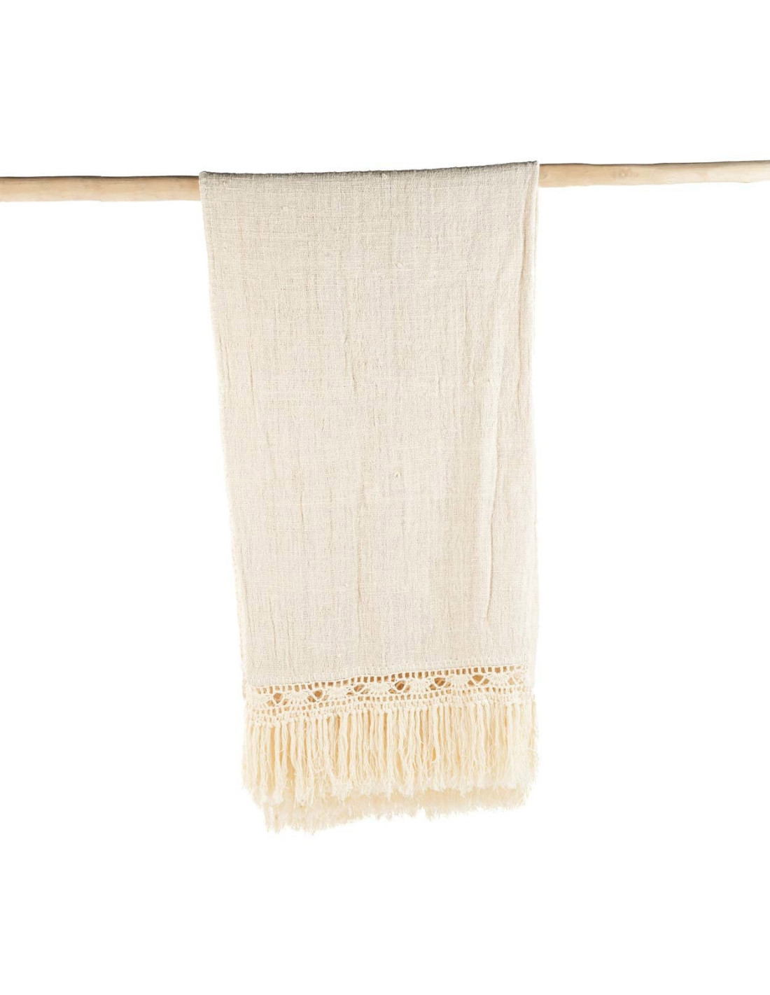 Plaid XXL original Bohème chic 270x135 en Coton Naturel Avec franges The Gipsy