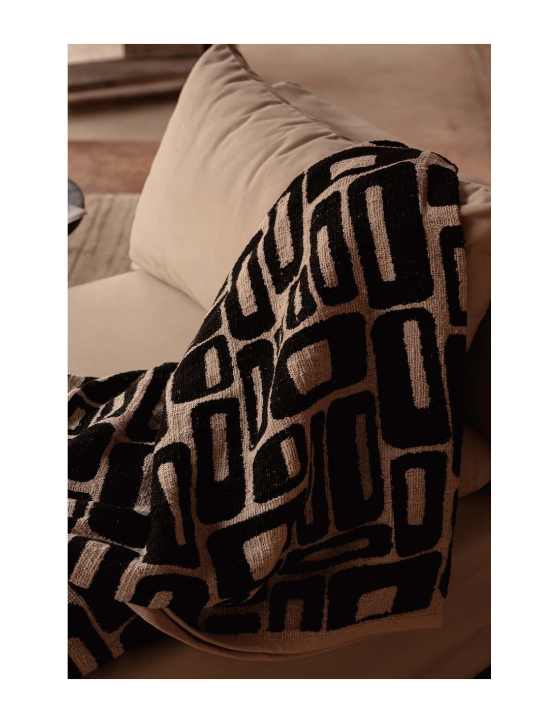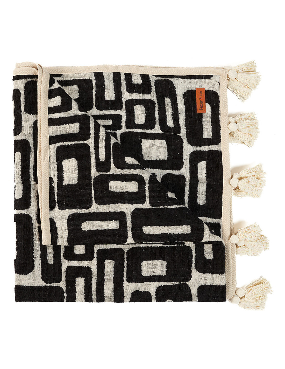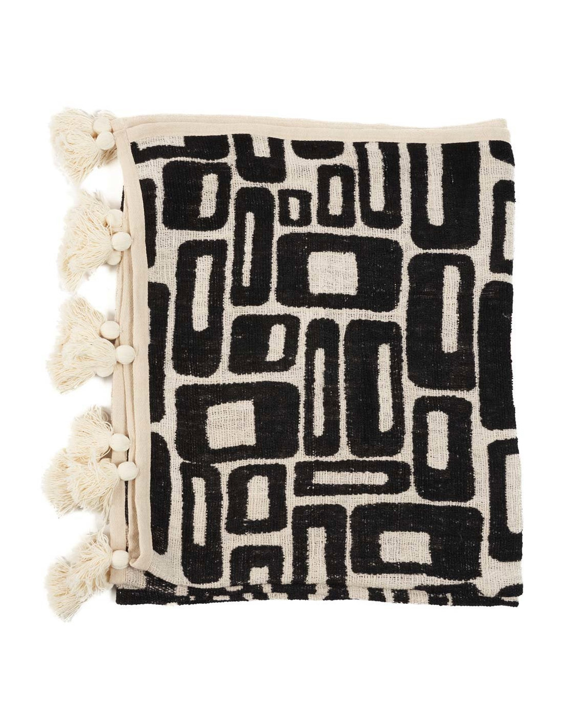 Plaid XXL original motif aztèque 240x128 en Coton Naturel Noir Avec pompons The Aztec