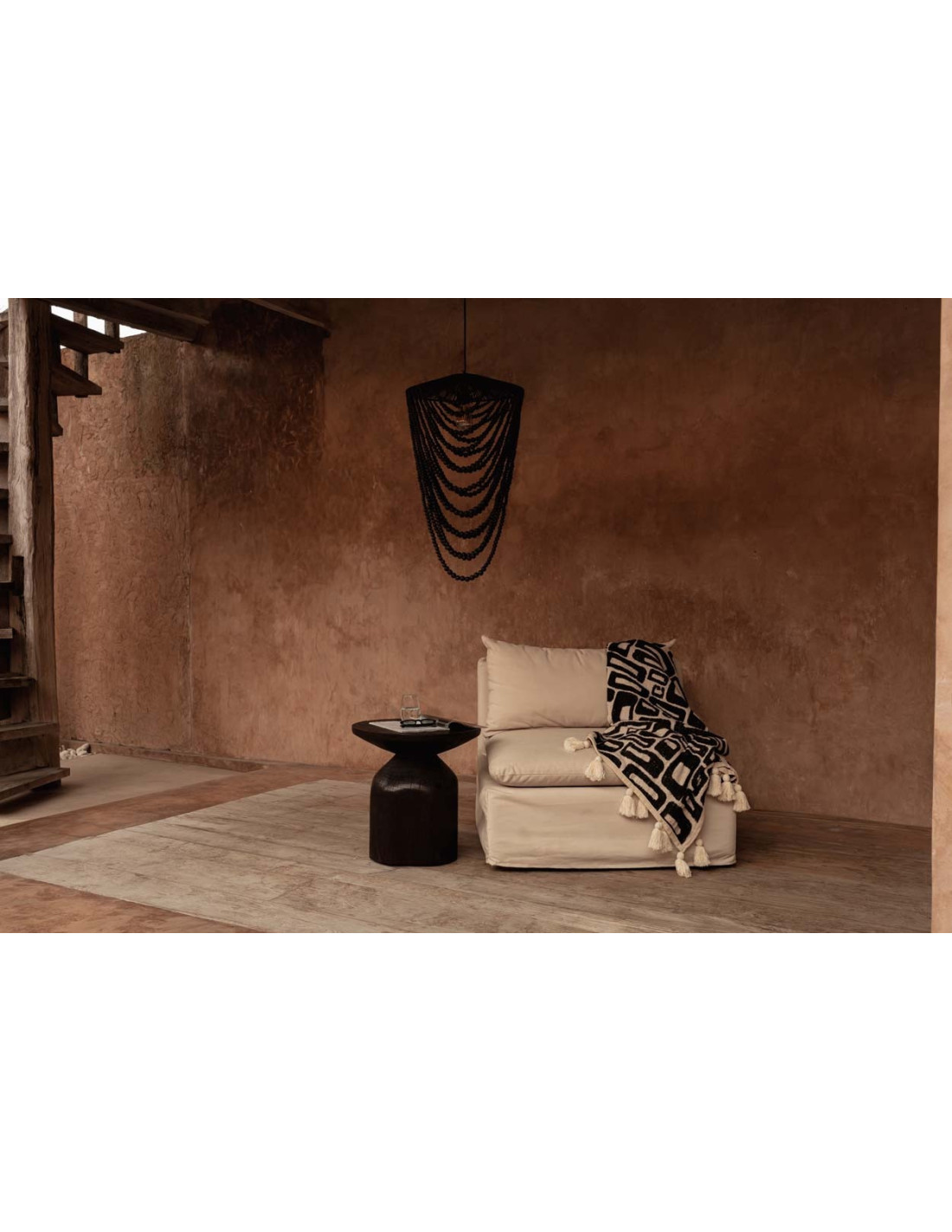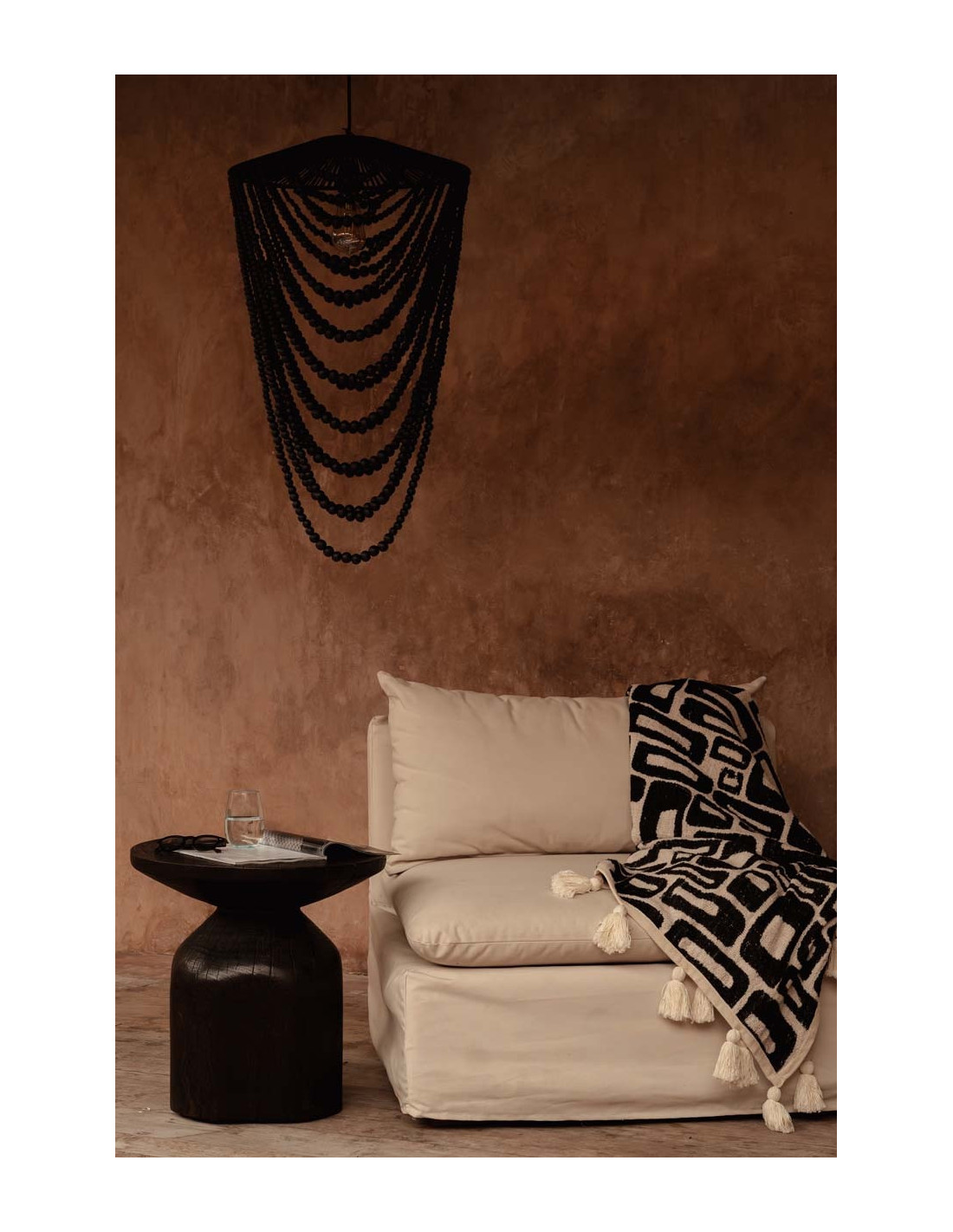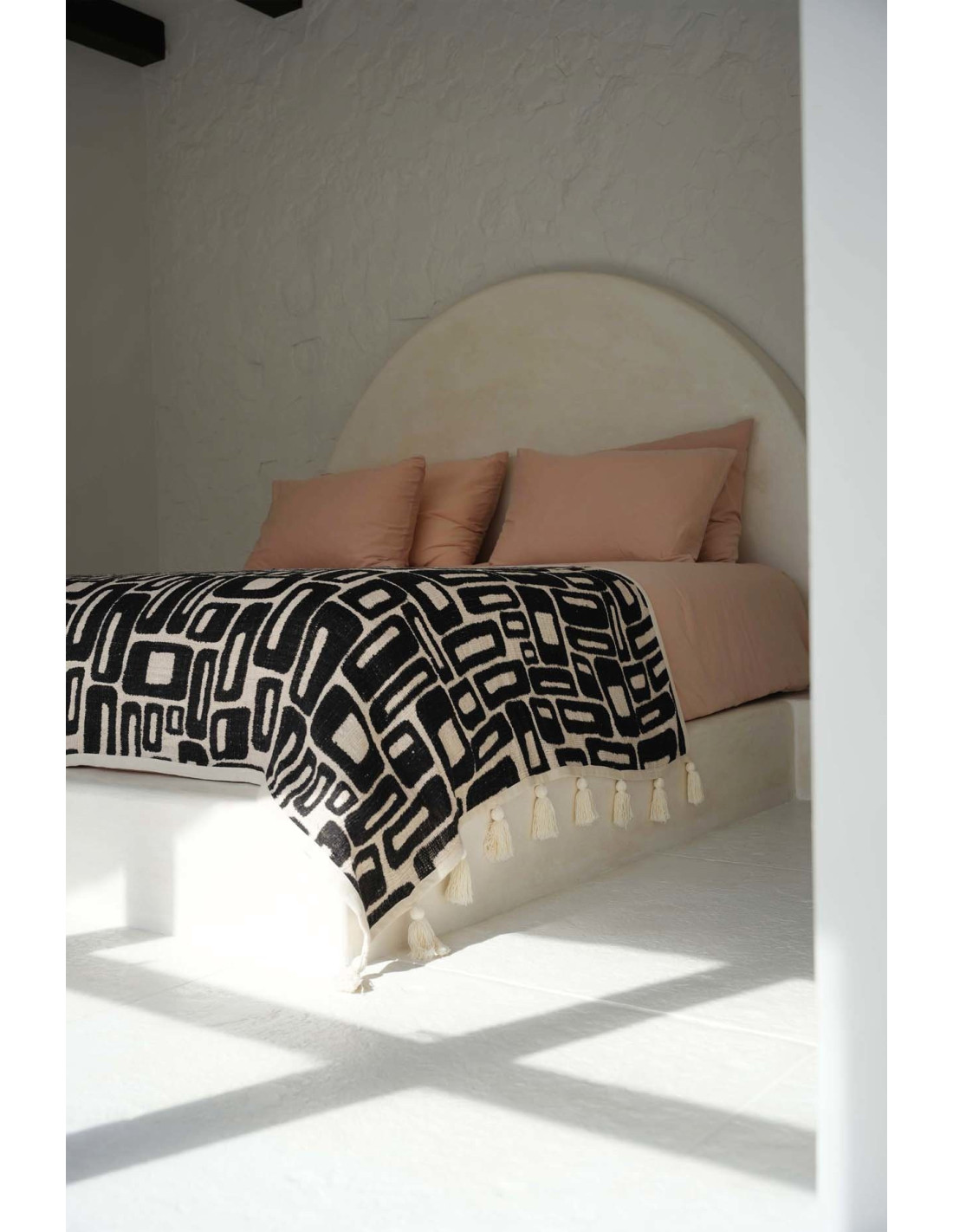 Plaid XXL original motif aztèque 240x128 en Coton Naturel Noir Avec pompons The Aztec