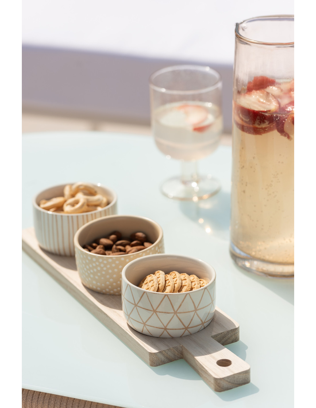 Planche à tapas rectangulaire 3 Bols en Bois Naturel Céramique Beige Blanc Noxi