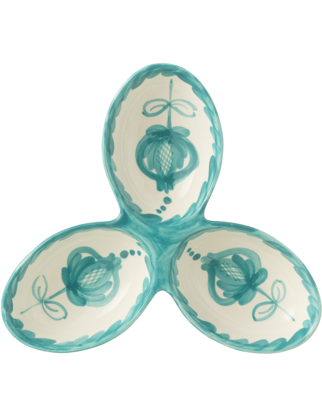 Plat à apéro 3 bols en Céramique Bleu aqua Blanc Motif fleur Granada