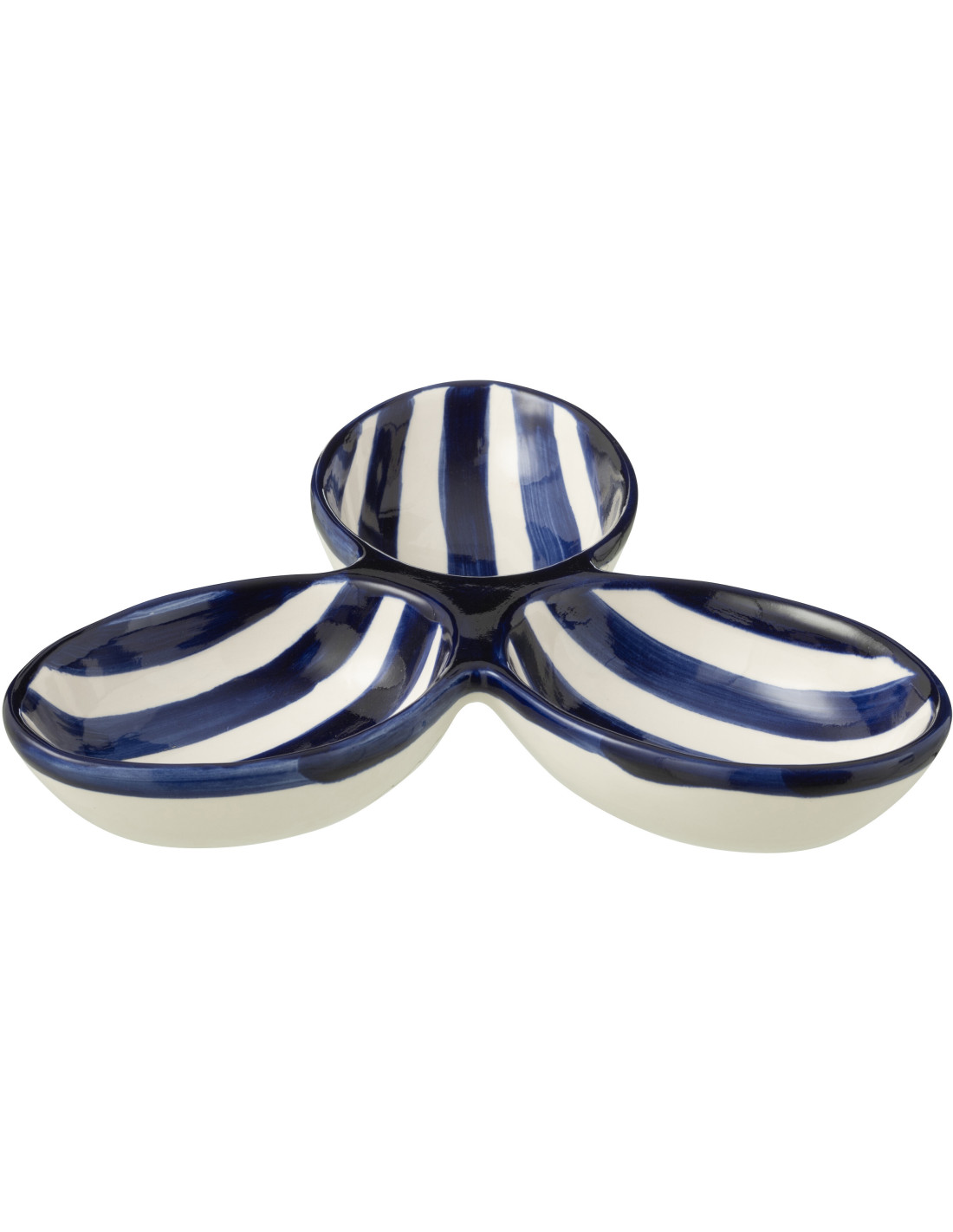 Plat à apéro 3 bols en Céramique Bleu cobalt Blanc Motif lignes Granada