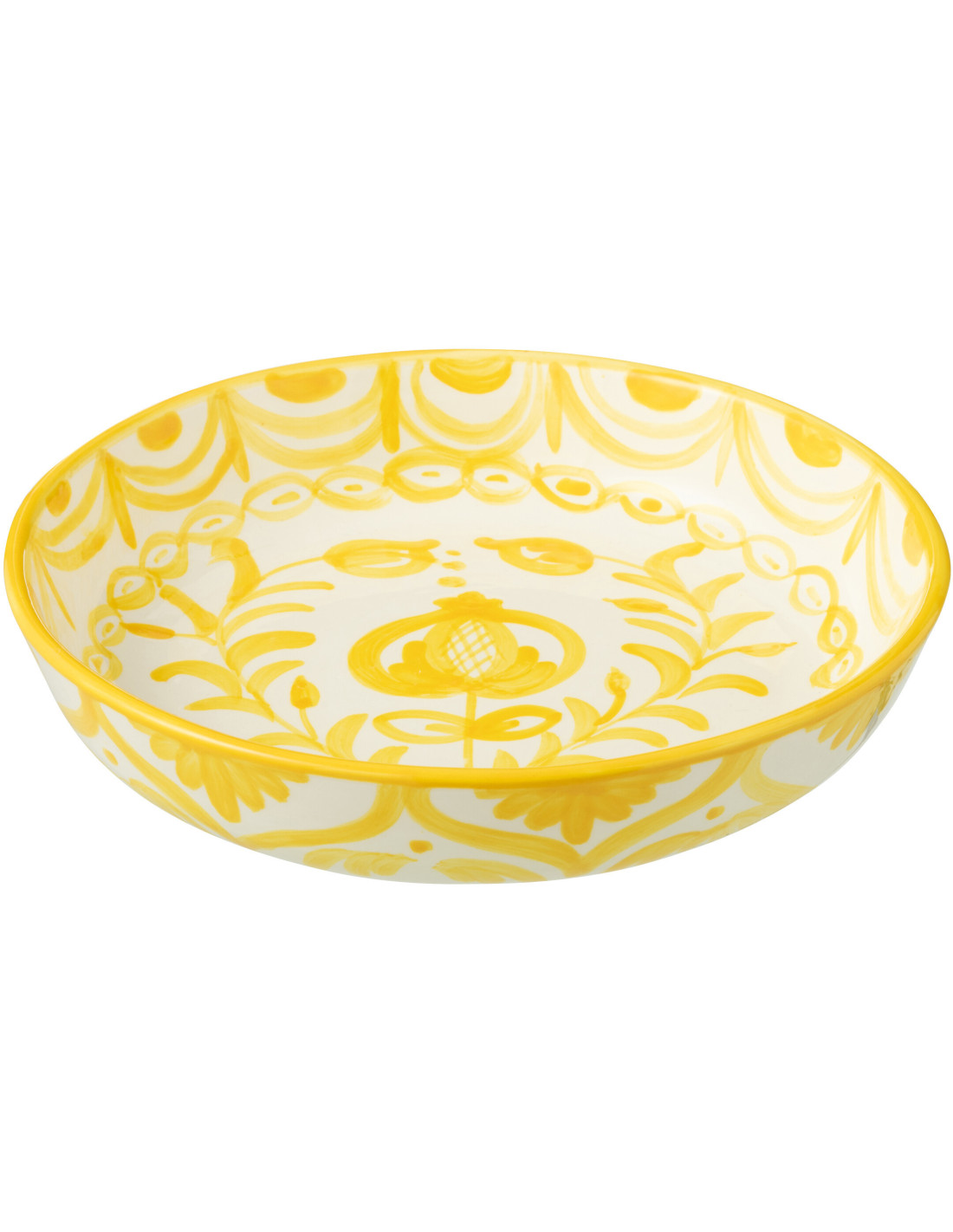 Plat original rond 25 cm en Céramique Jaune Blanc Motif fleur Granada - 1