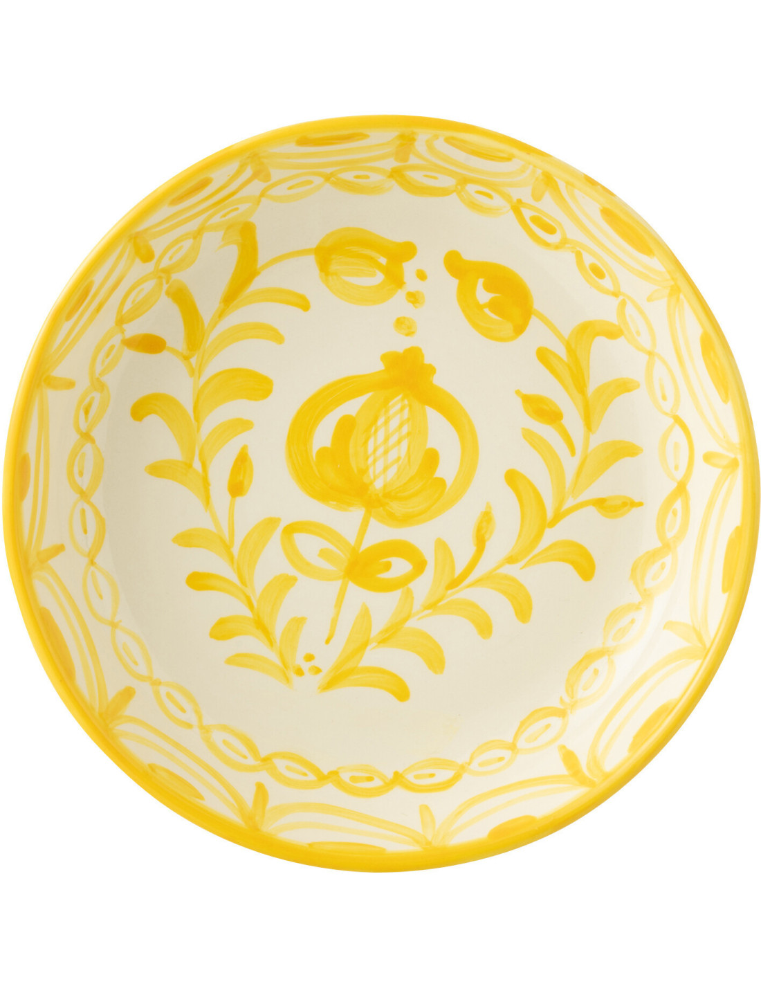 Plat original rond 25 cm en Céramique Jaune Blanc Motif fleur Granada