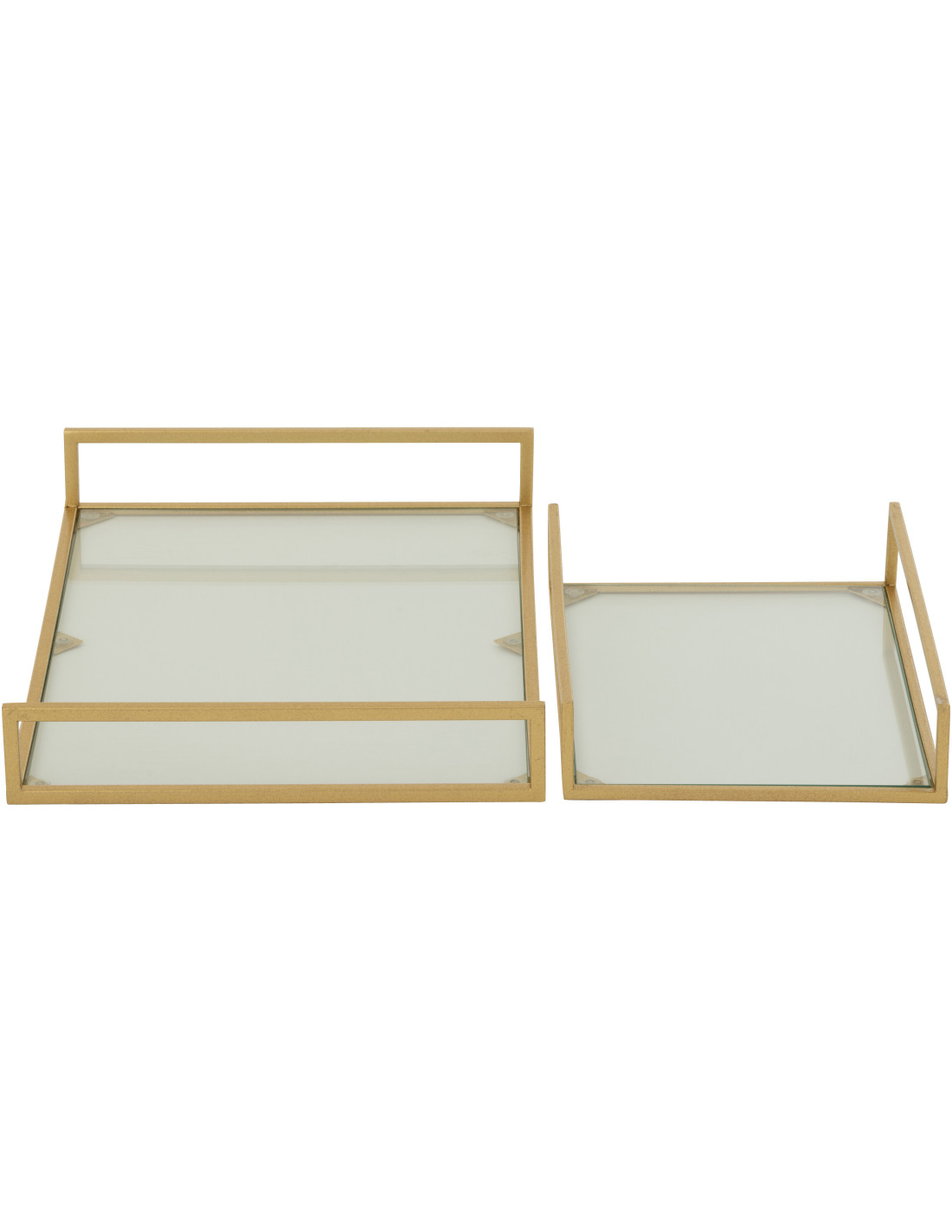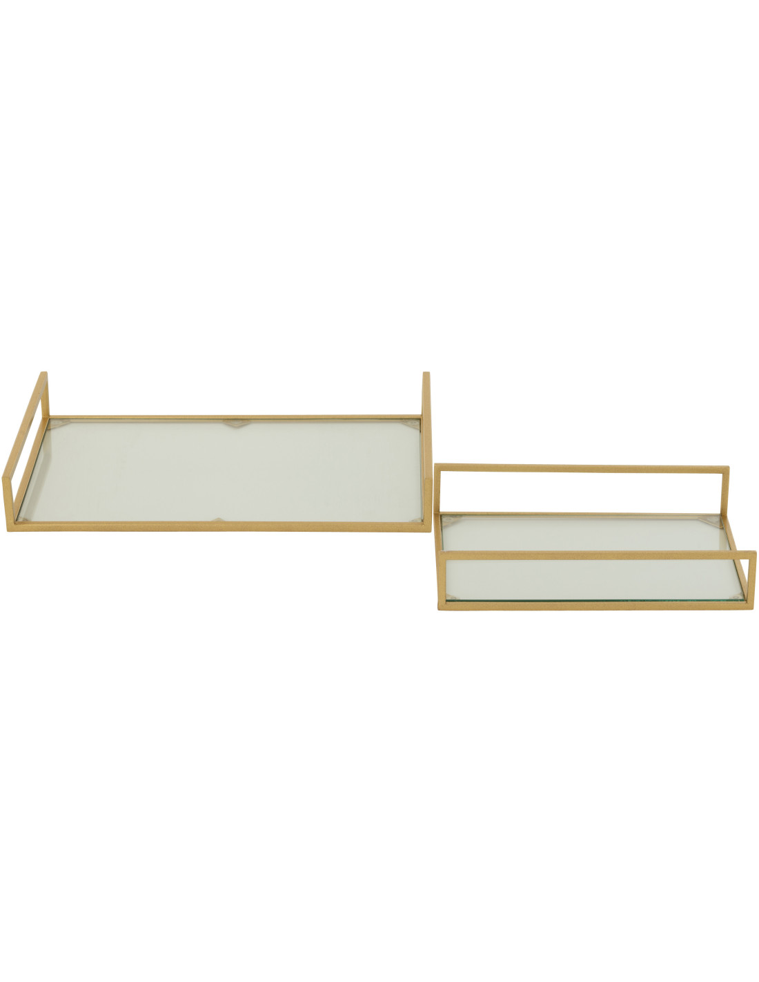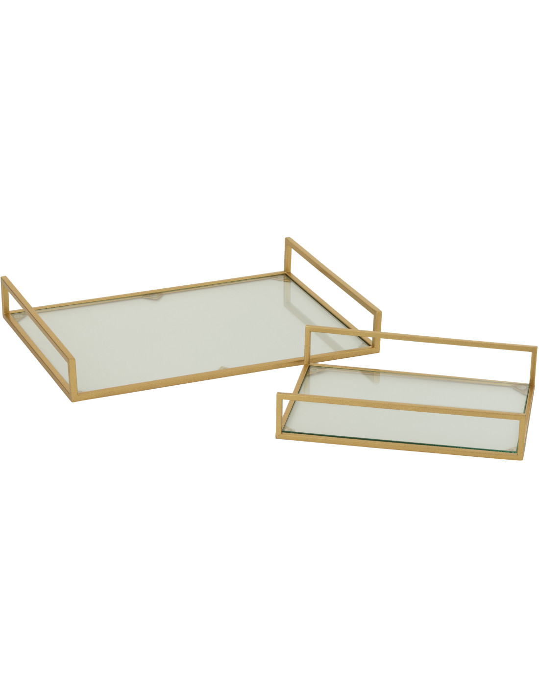 Plateau de service moderne chic Rectangulaire 2 poignées en Verre Transparent Métal Doré Irinia (Lot de 2)