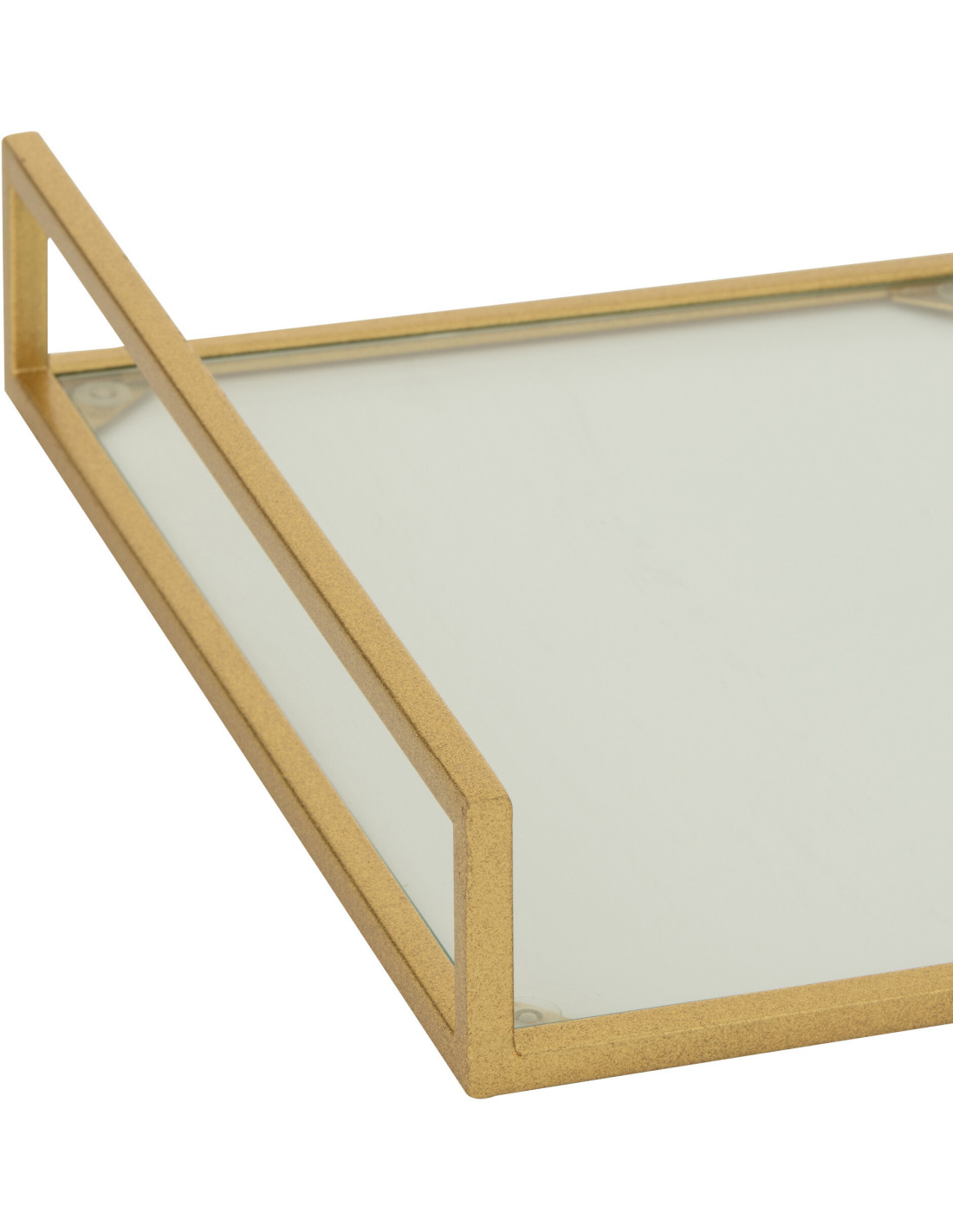 Plateau de service moderne chic Rectangulaire 2 poignées en Verre Transparent Métal Doré Irinia (Lot de 2) - 6