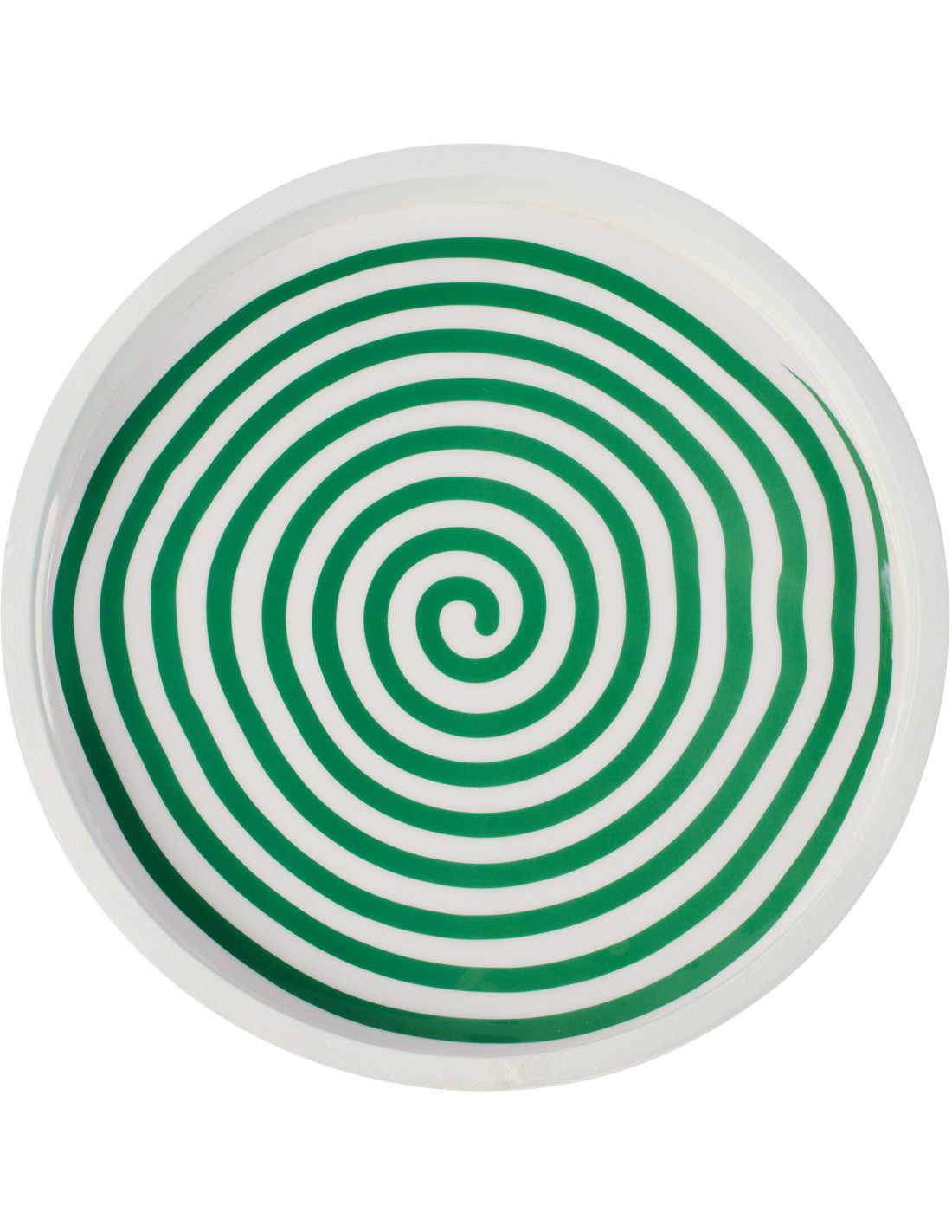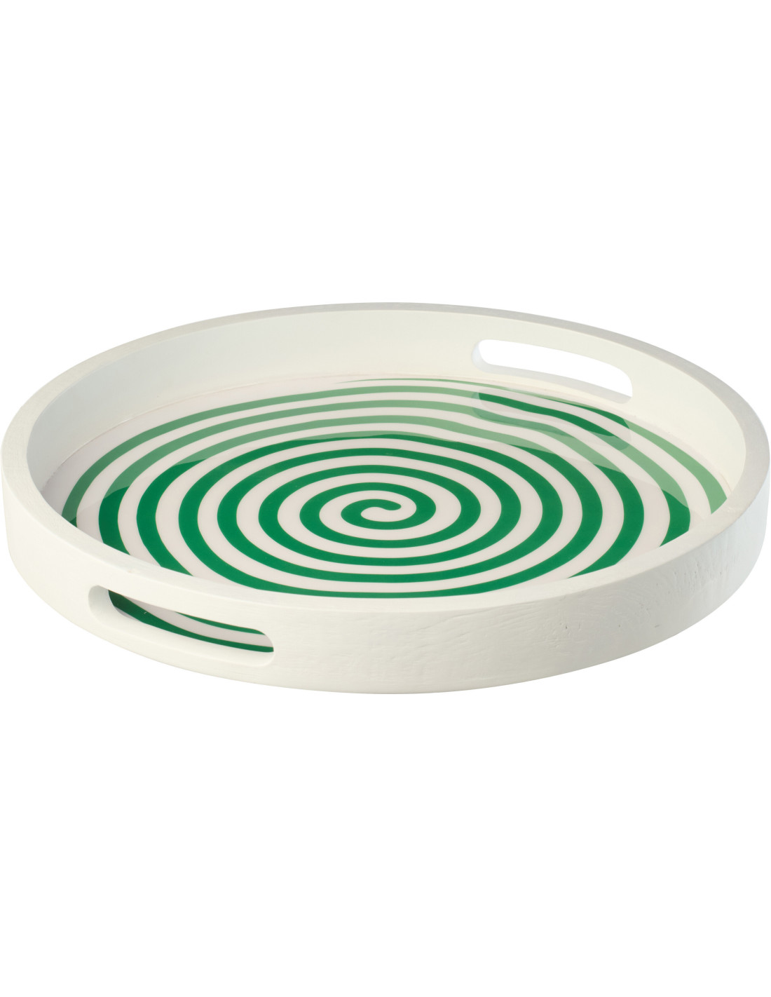 Plateau de service style méditerrannée Rond 40 cm Bois de manguier Blanc Vert Motif lignes Sorella