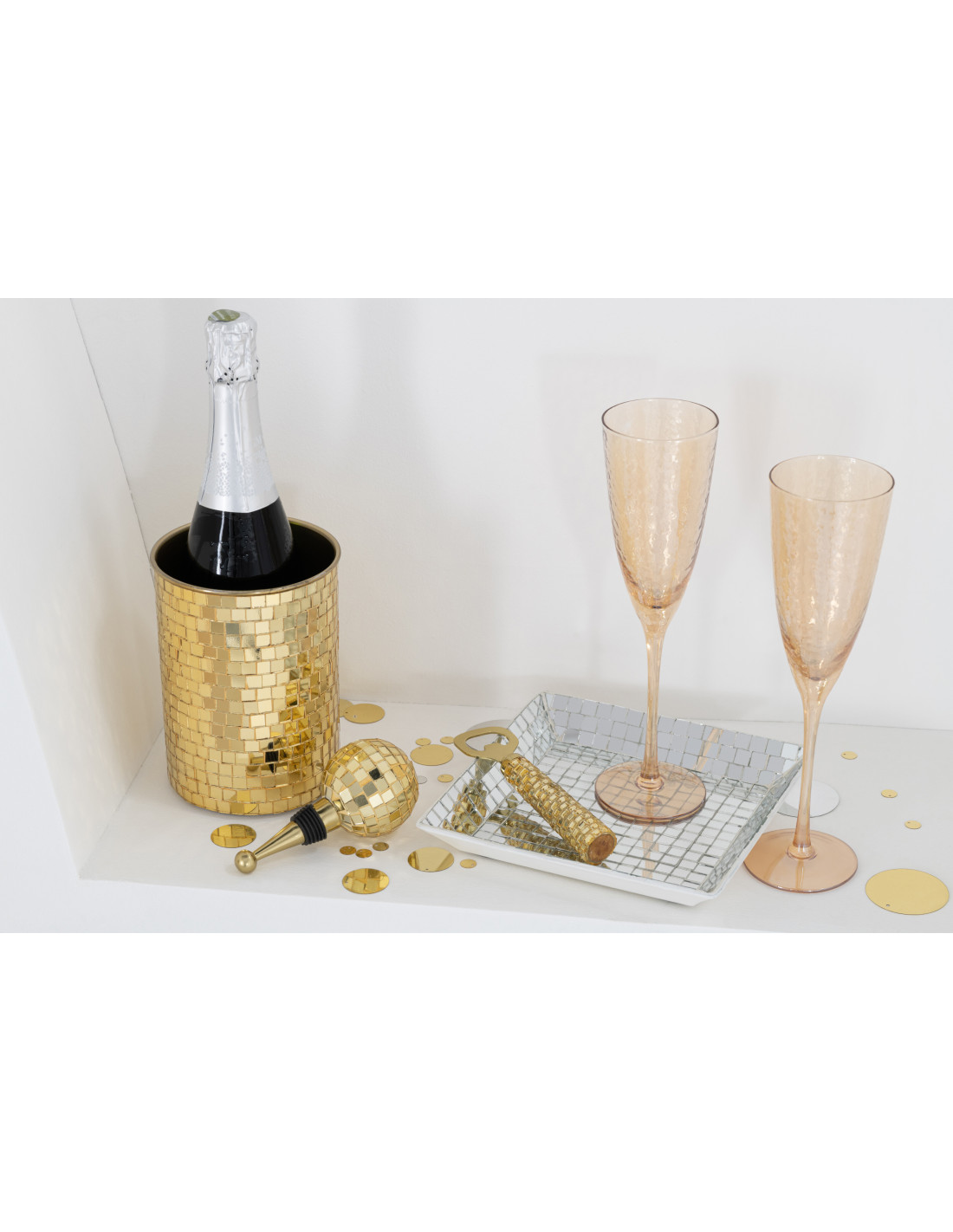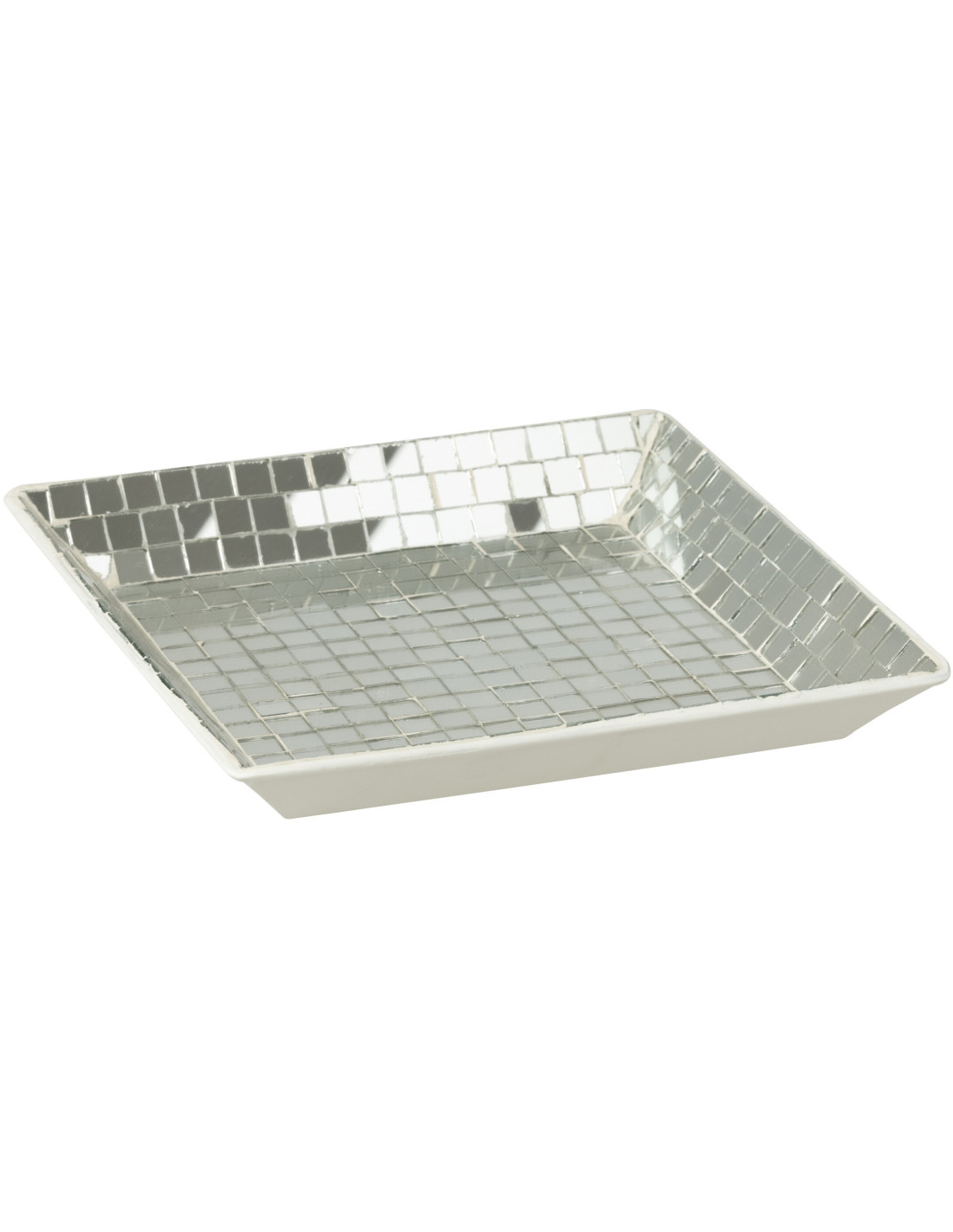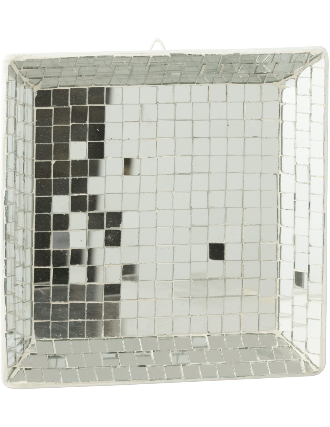 Plateau déco design boule à facettes Carré 20 cm Miroir Argenté Bois Disco