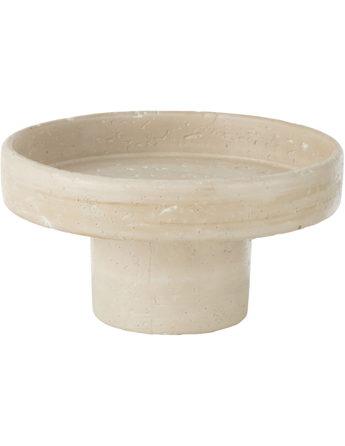 Plateau déco moderne rond sur pied 28 cm en Ciment Blanc crème Olina