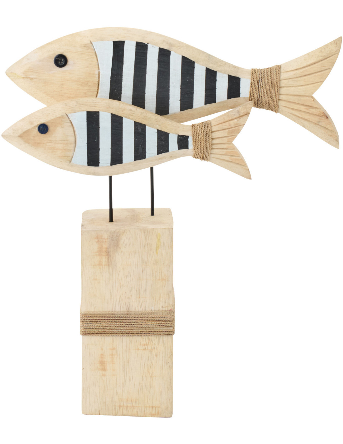 Poissons déco design sur pied H 45 cm Bois d'albasia Naturel Noir Blanc Motif rayures Tweeling