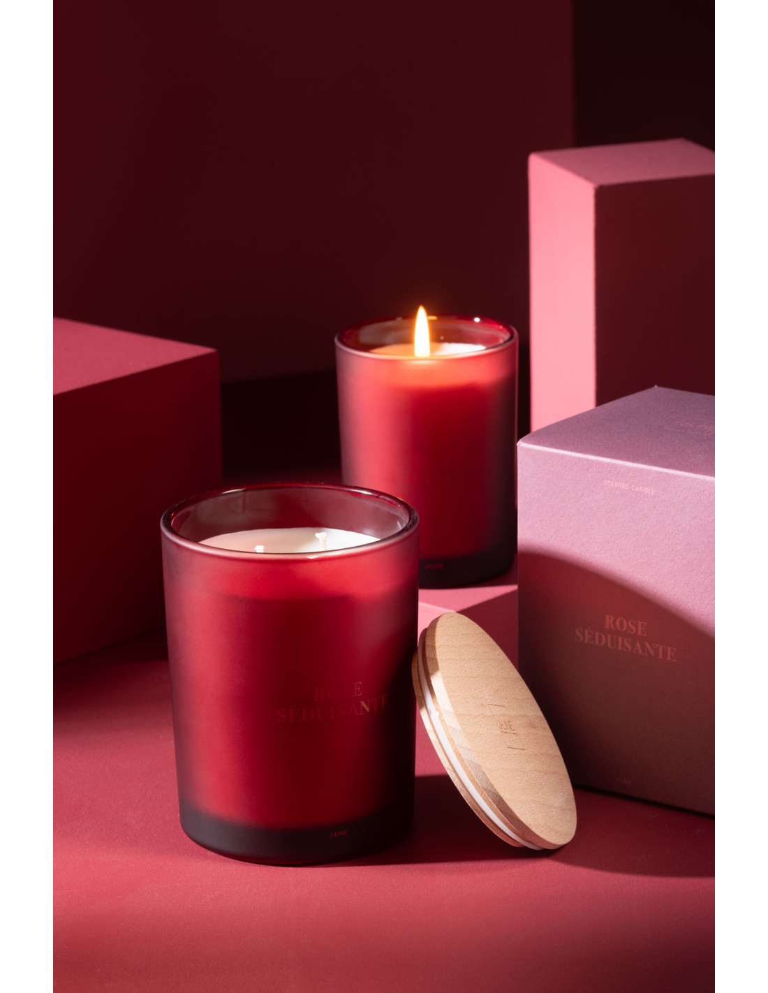 Bougie parfumée Mélange floral Rose séduisante 38 H Verre Rouge Cire Accord Essentiels