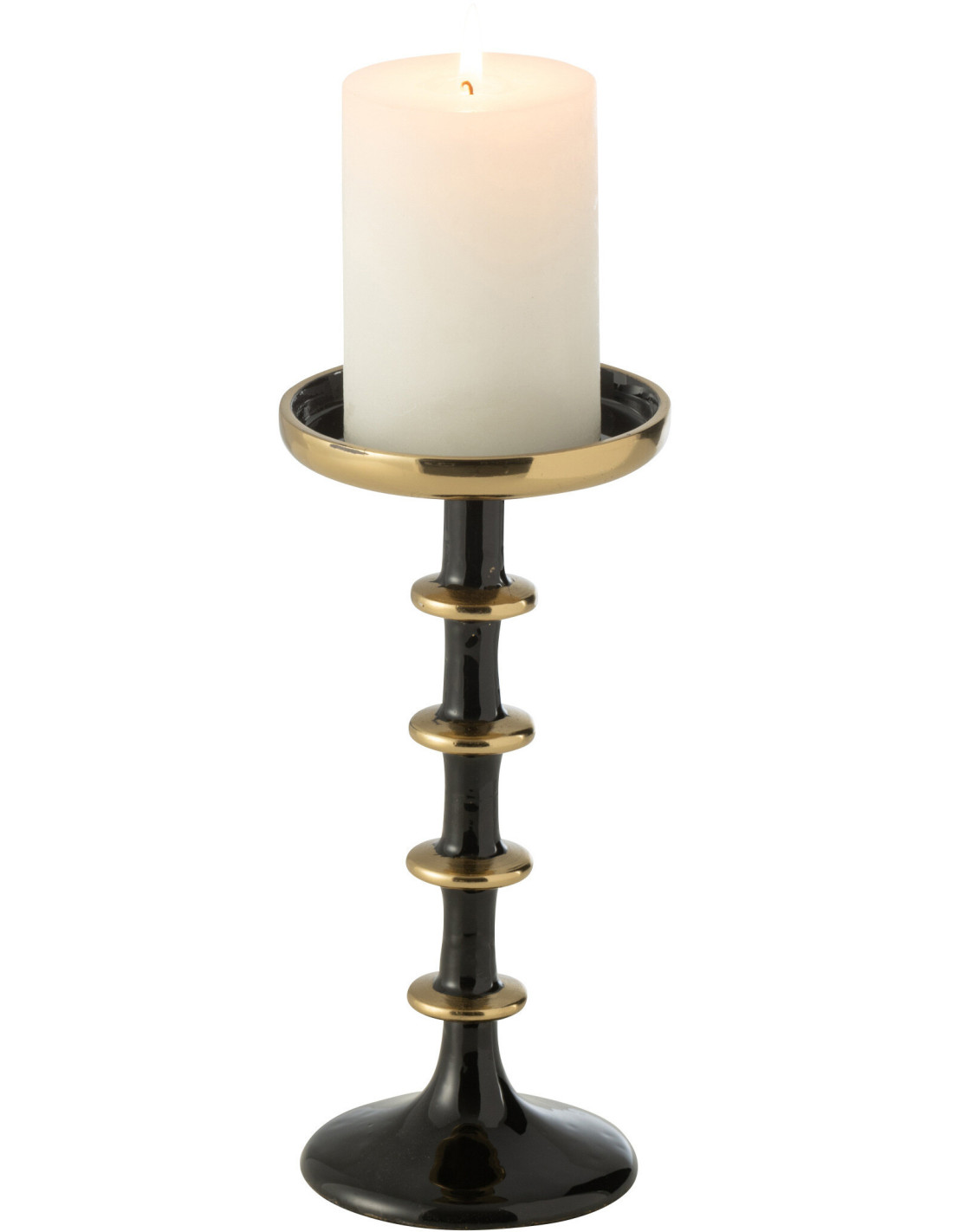Porte bougie moderne sur pied Hauteur 23 cm en Métal Noir Doré Rimon