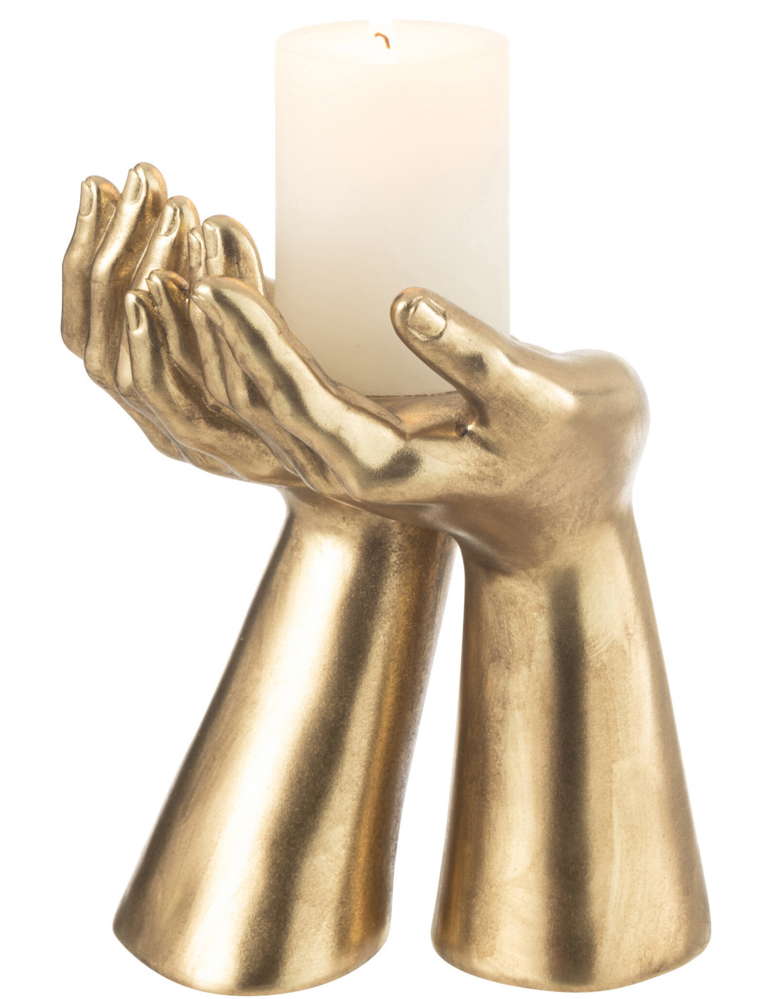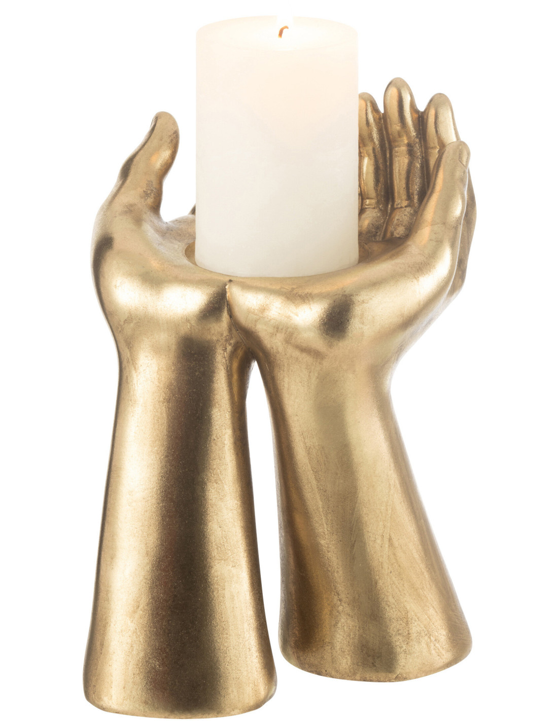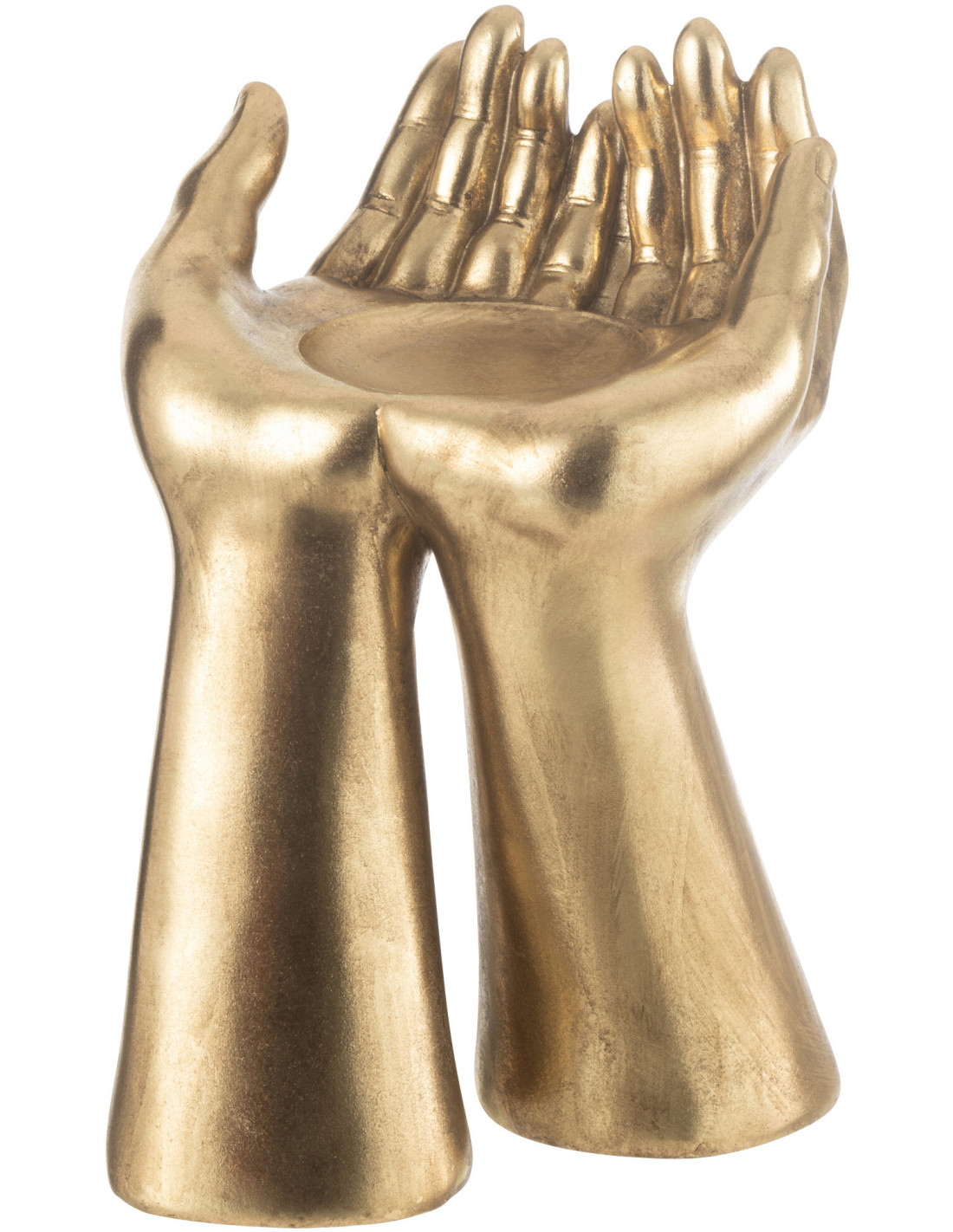 Porte bougie original Mains Hauteur 25 cm en Résine Doré Handla
