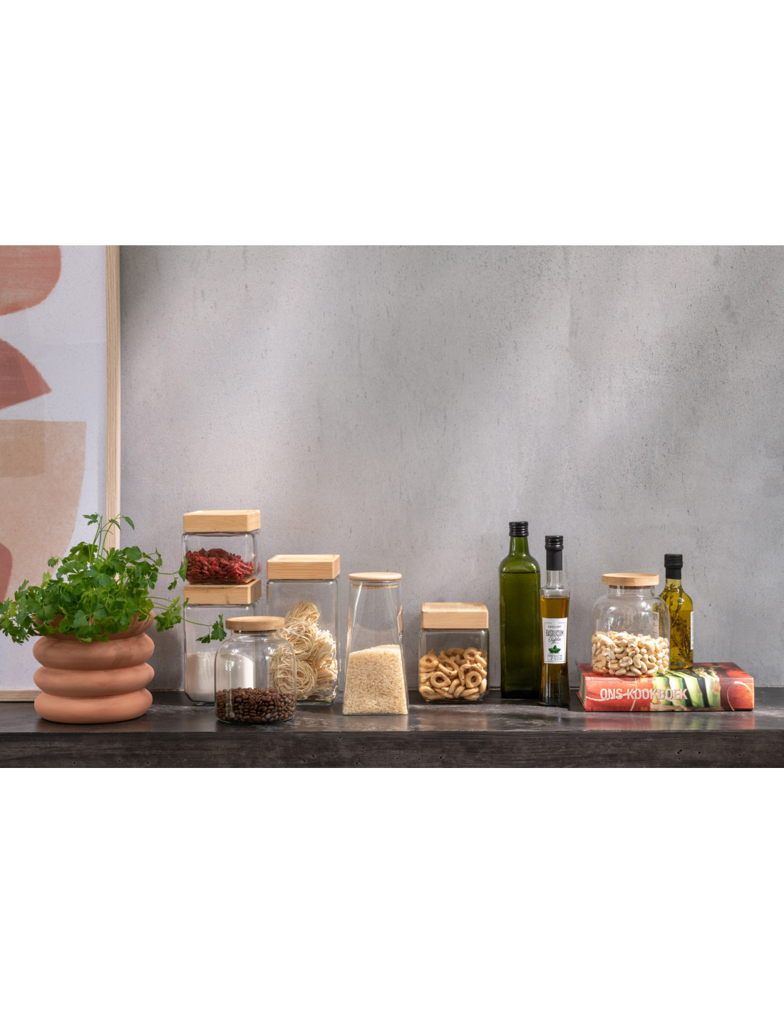 Pot avec couvercle 1,2 L Tom en Verre Transparent Bambou Naturel - 1