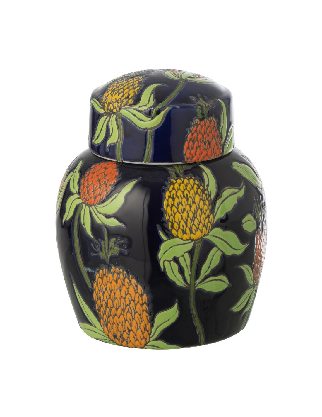 Pot déco style art déco végétal Porcelaine Bleu Motif ananas Noctiflo