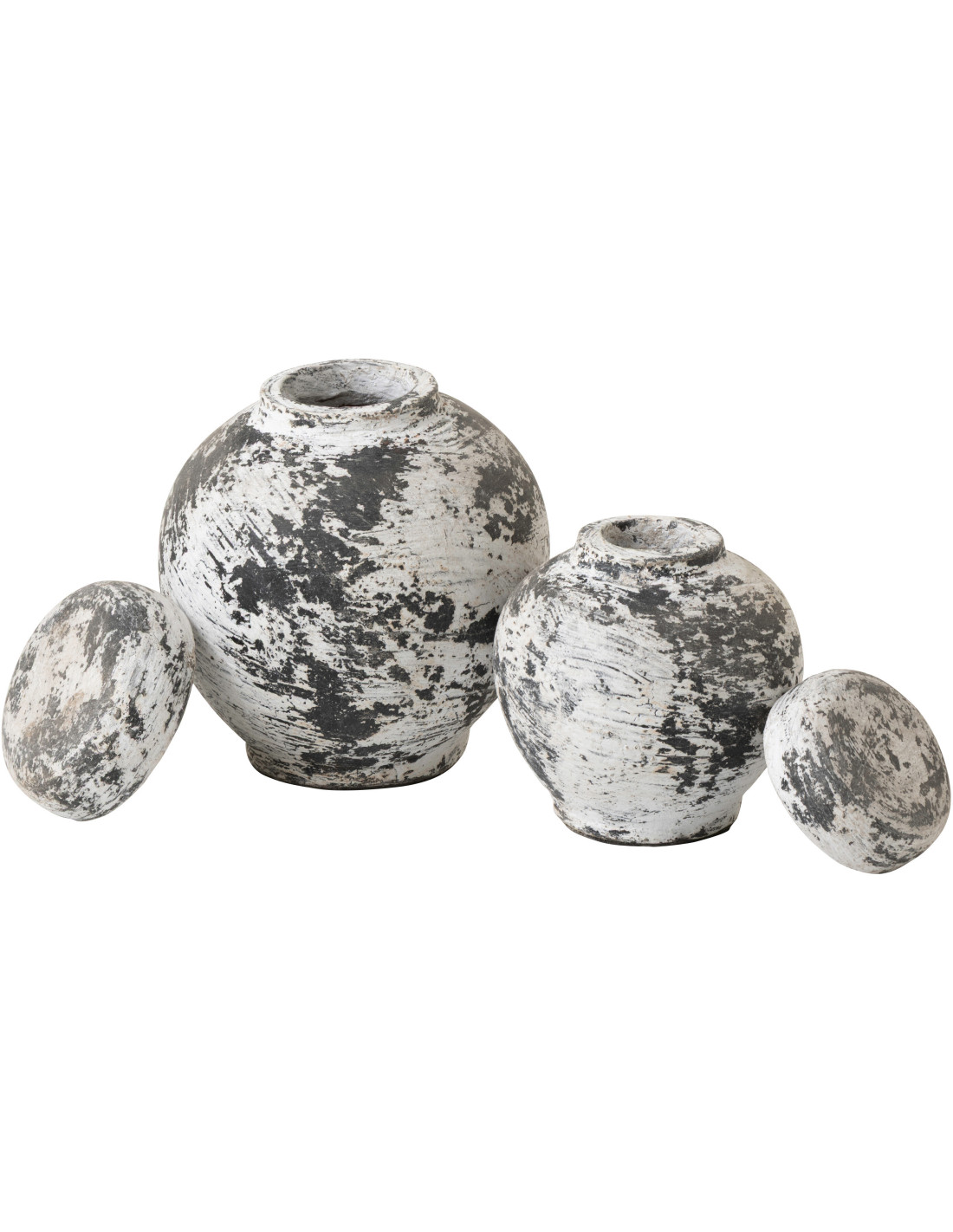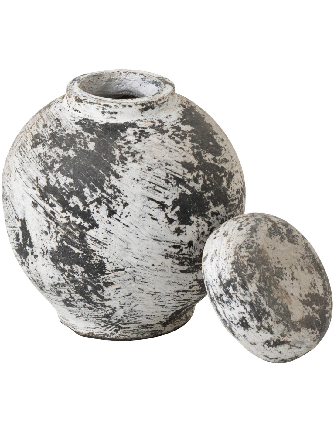 Pot déco style ethnique moderne avec couvercle H 20 cm Terre cuite Noir Blanc Ruby