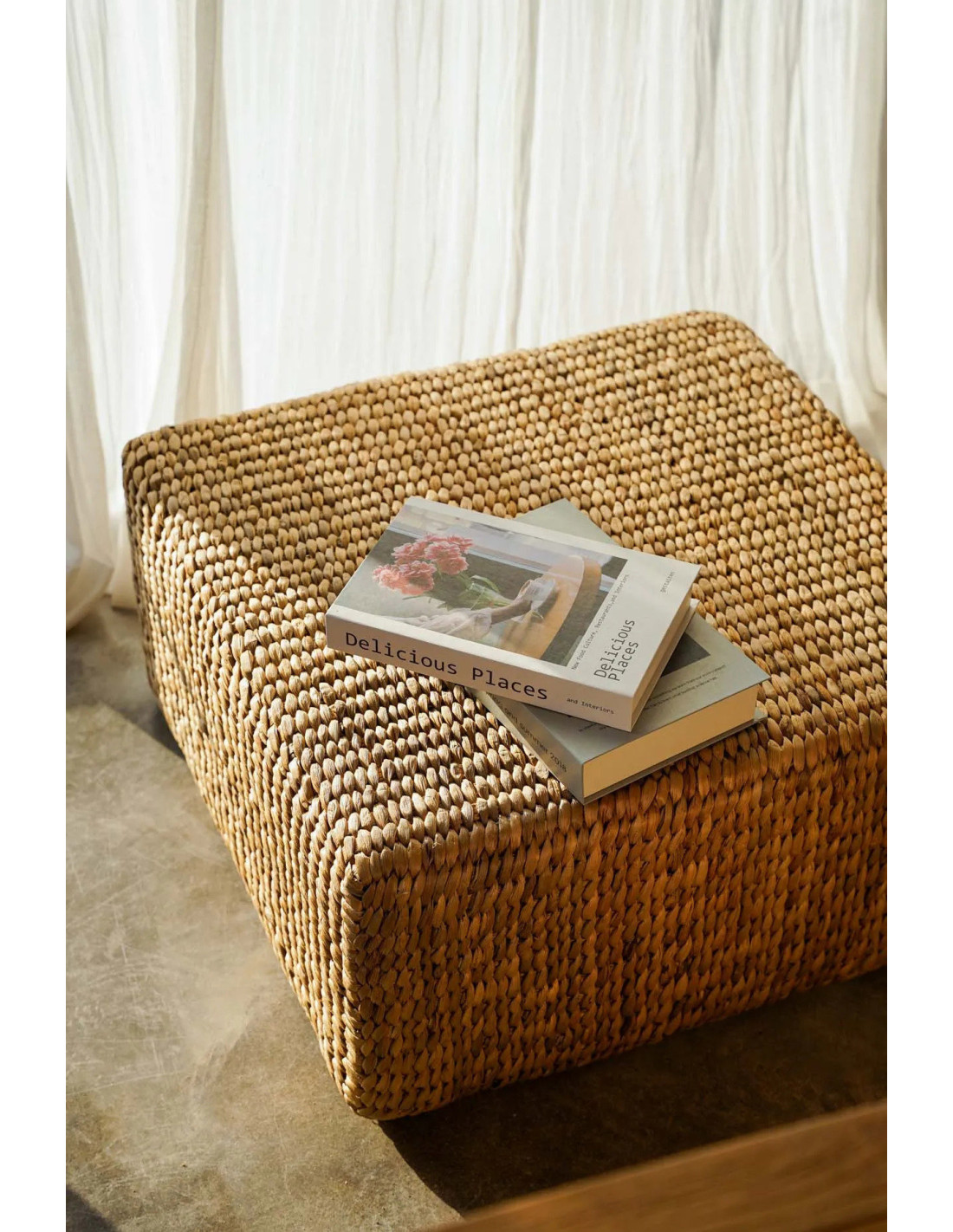 Pouf bohème chic Carré en Jacinthe d'eau Naturel The Hyacinth
