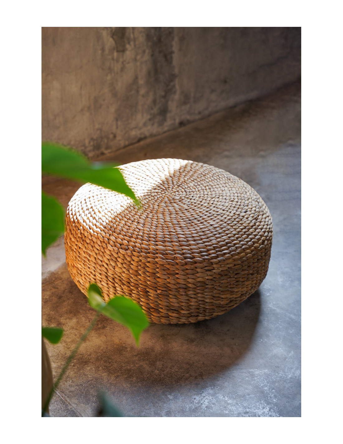 Pouf bohème chic Rond en Jacinthe d'eau Naturel The Hyacinth