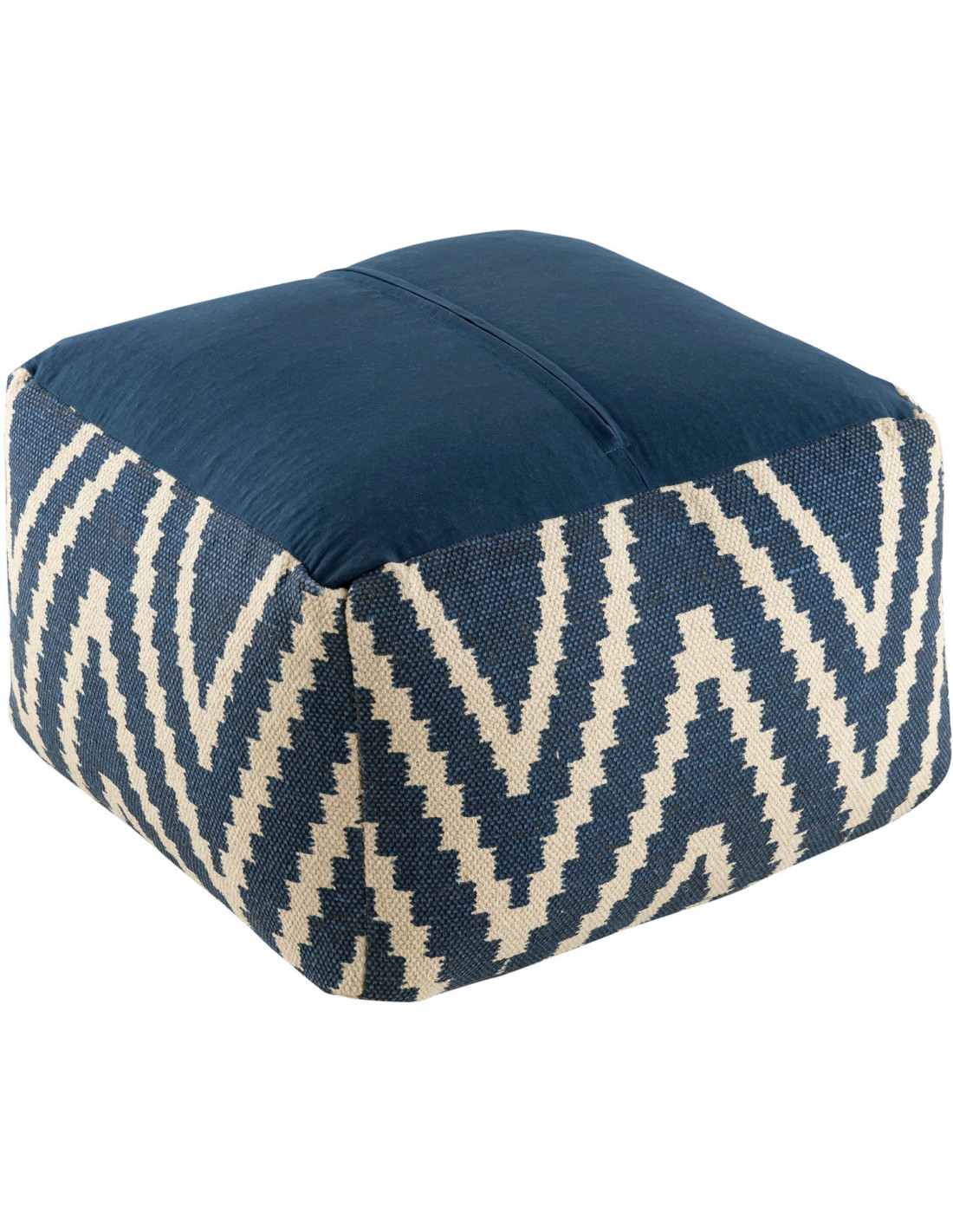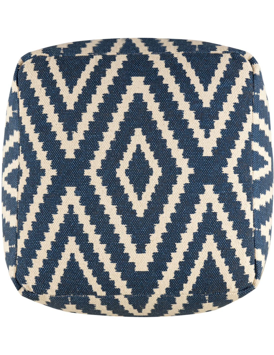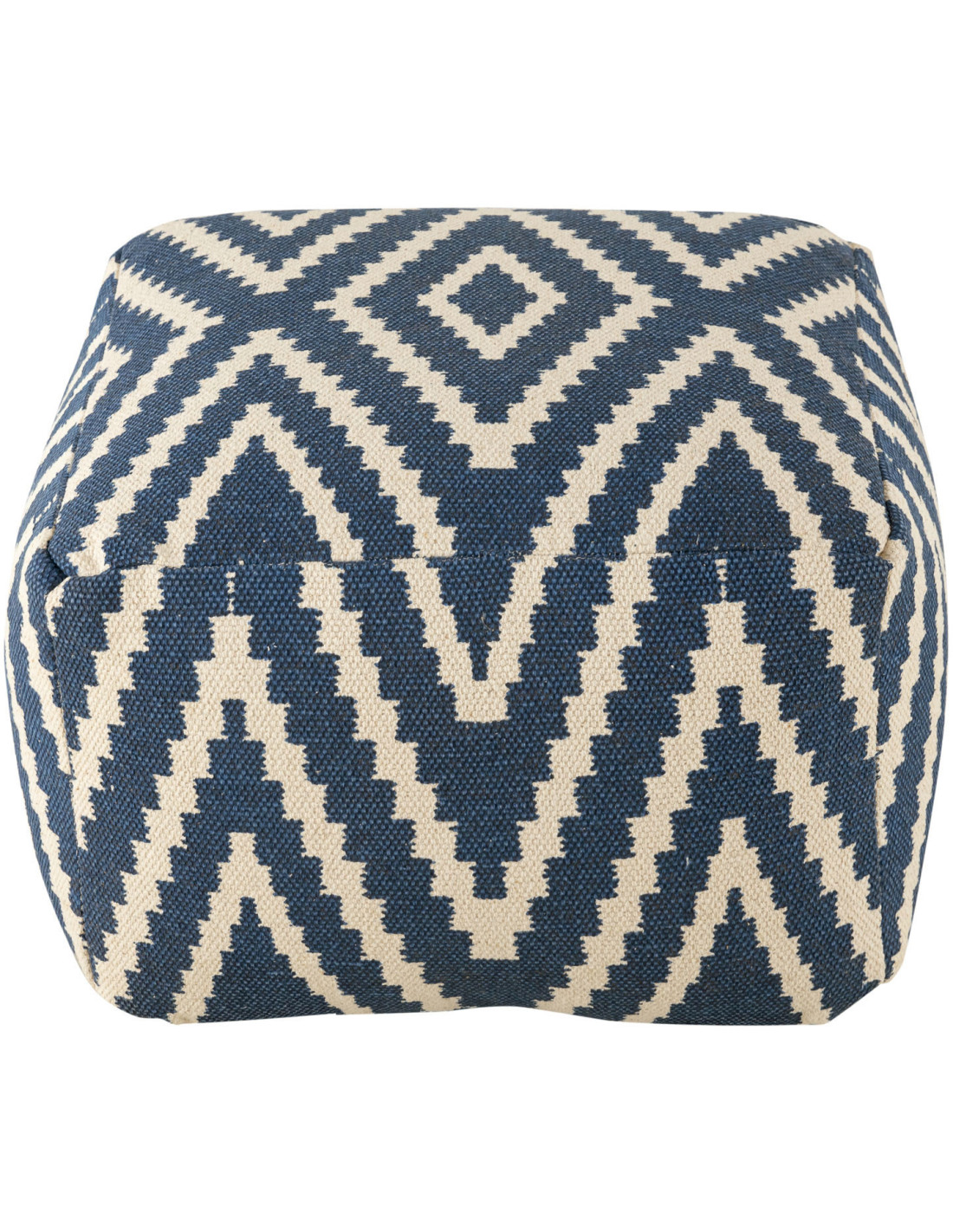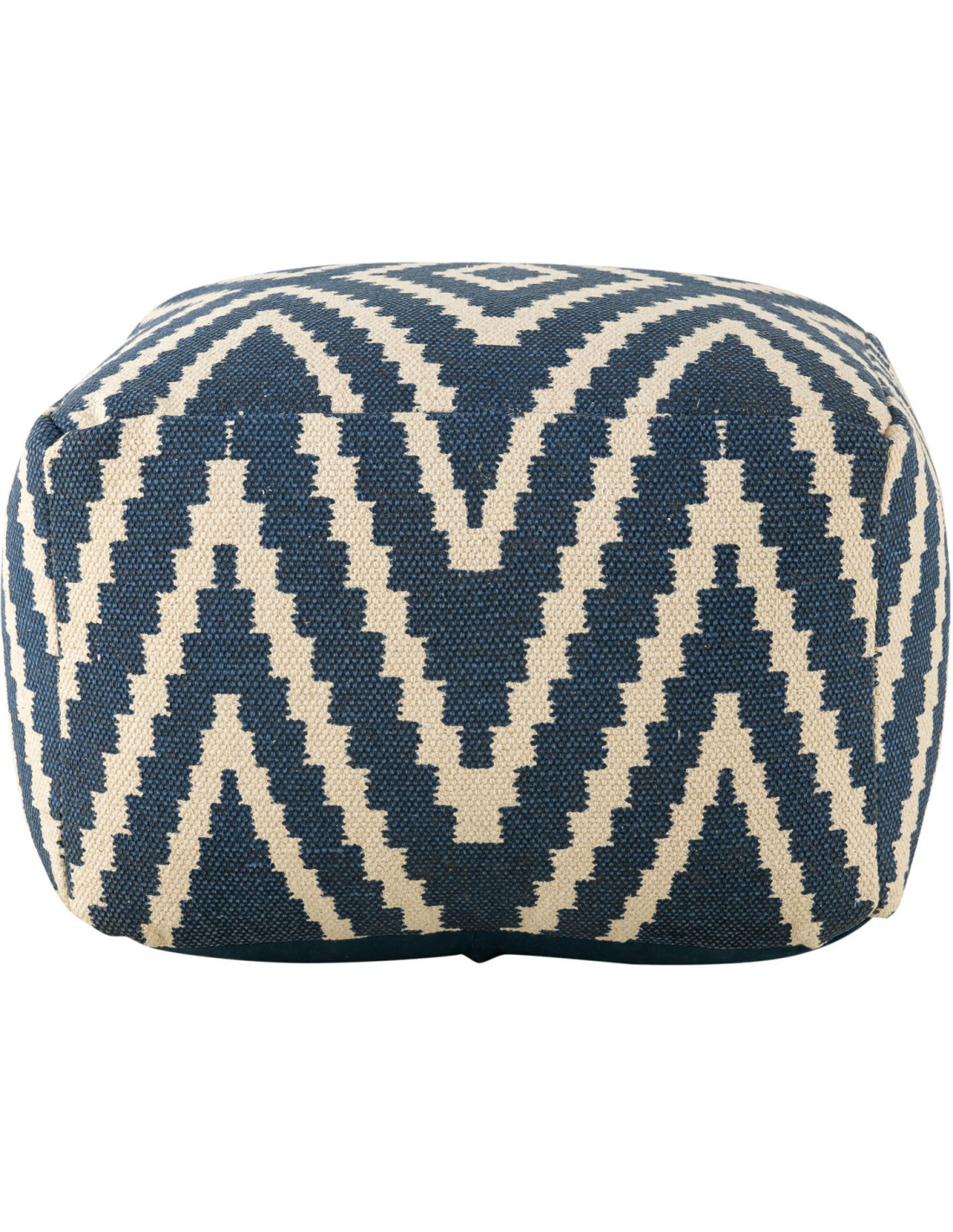Pouf Carré 55 cm en Coton Bleu Motif zigzag Kilim