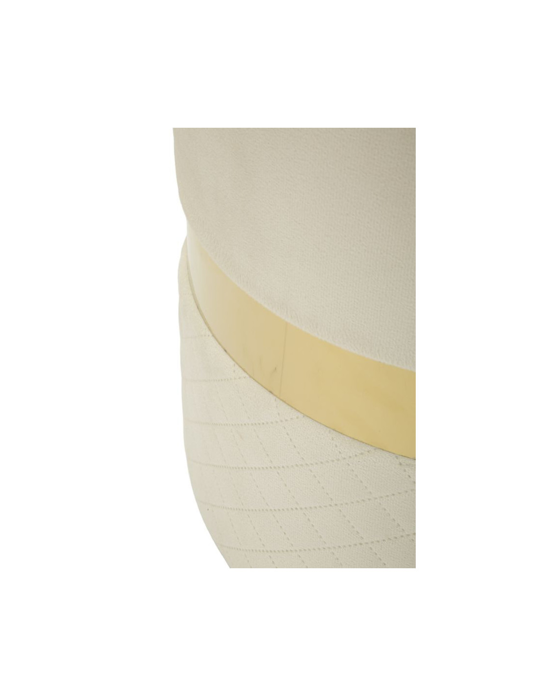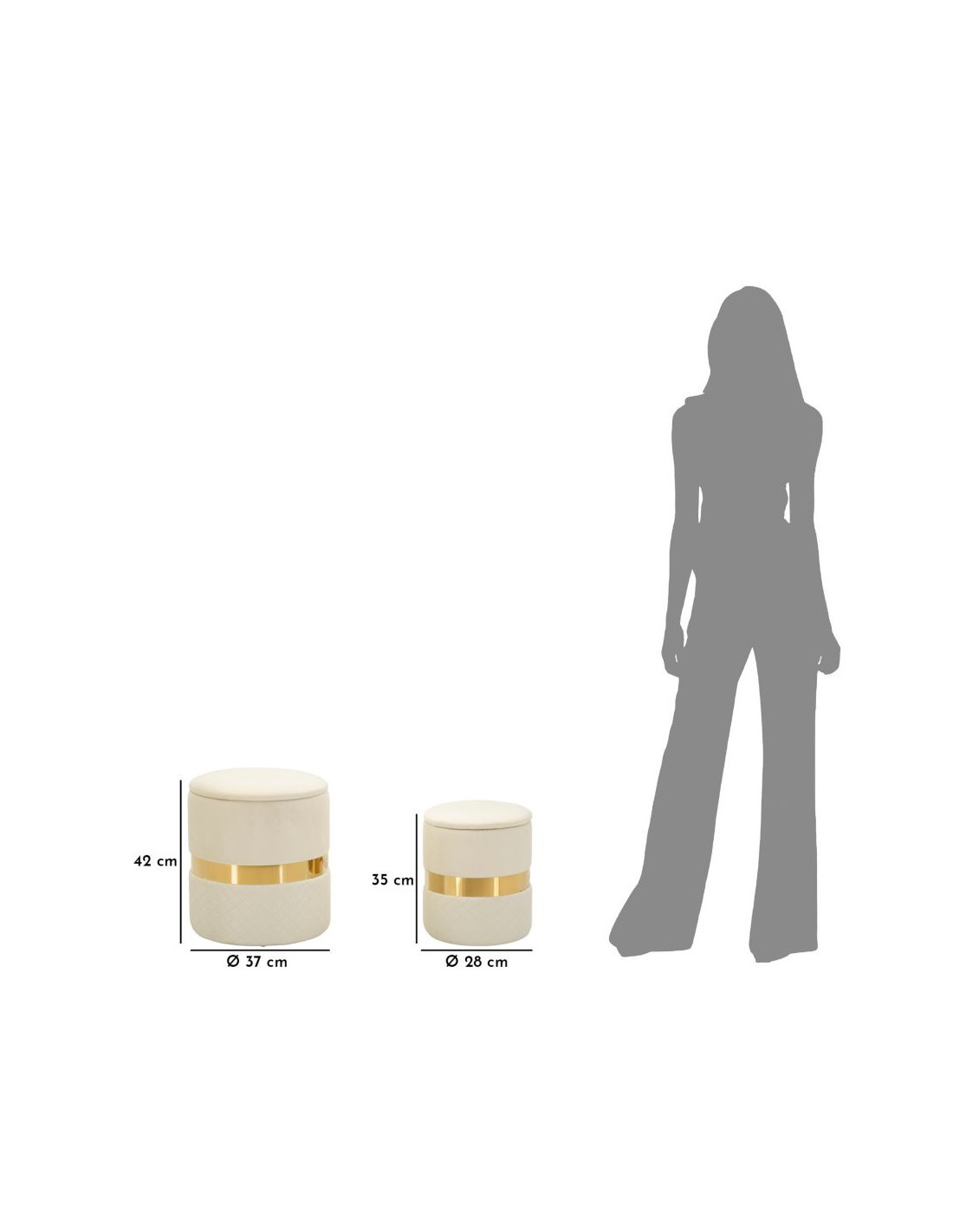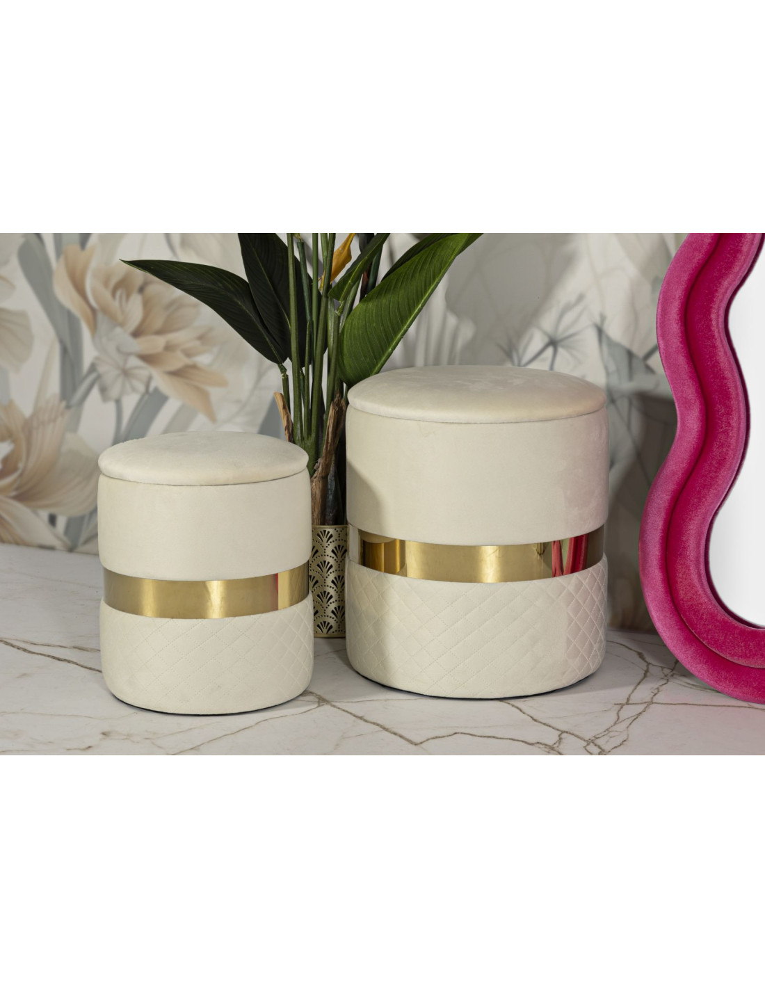 Pouf coffre rangement moderne chic Rond Velours Blanc crème MDF Métal Doré Sheffild (Lot de 2)