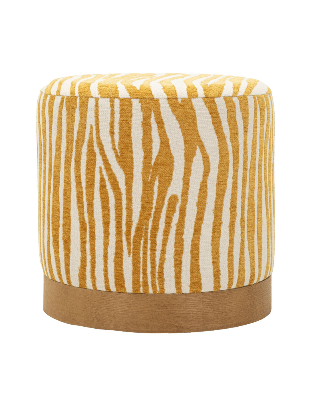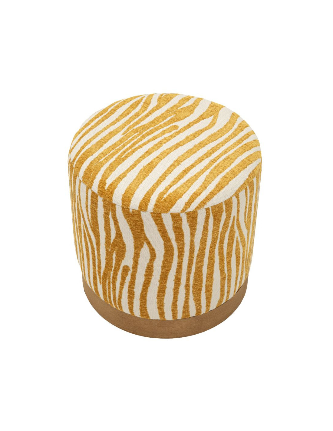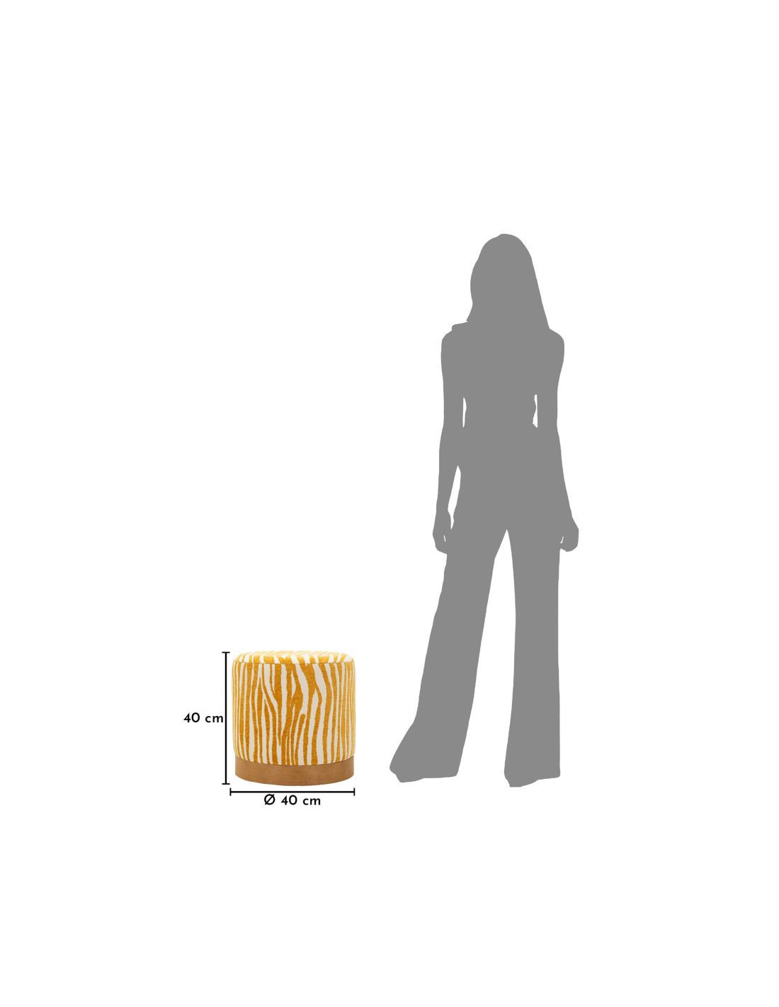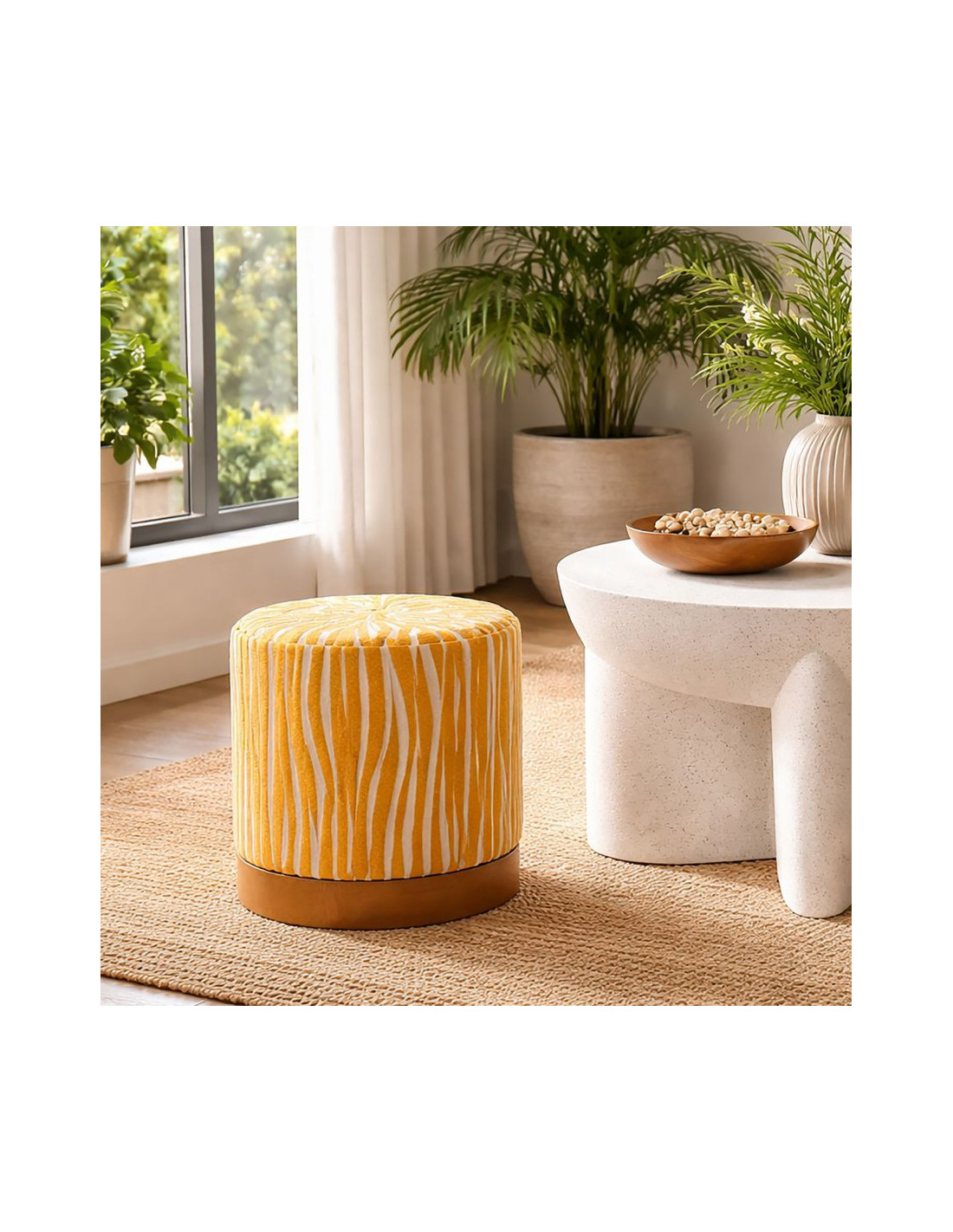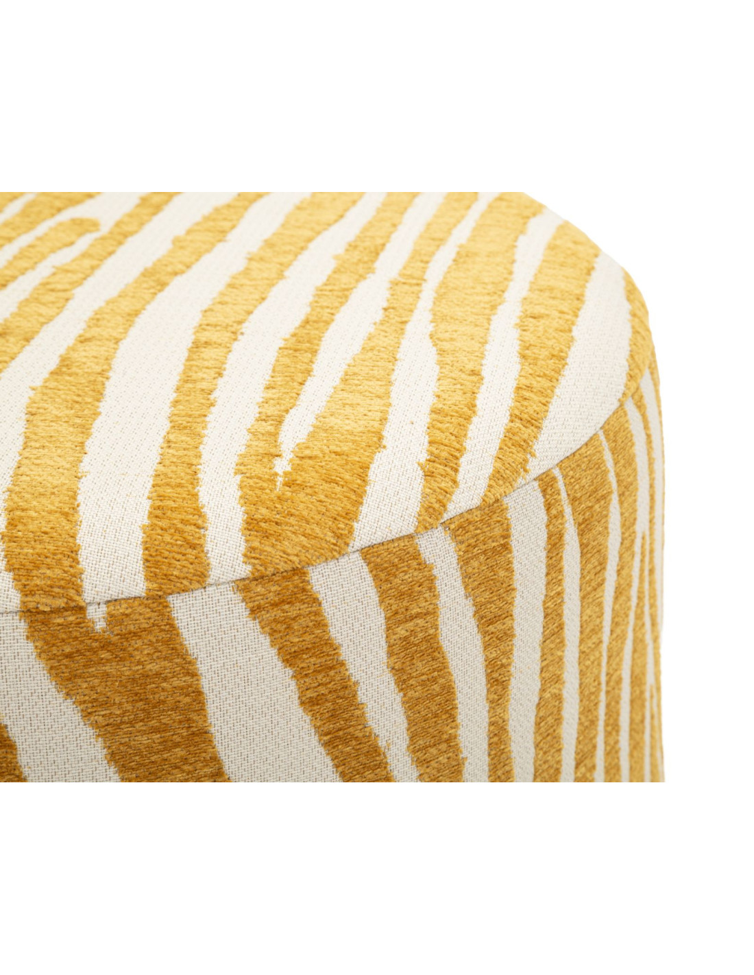 Pouf design chic Rond 40 cm Tissu Jaune moutarde Beige Bois de sapin Naturel Éponge Savana