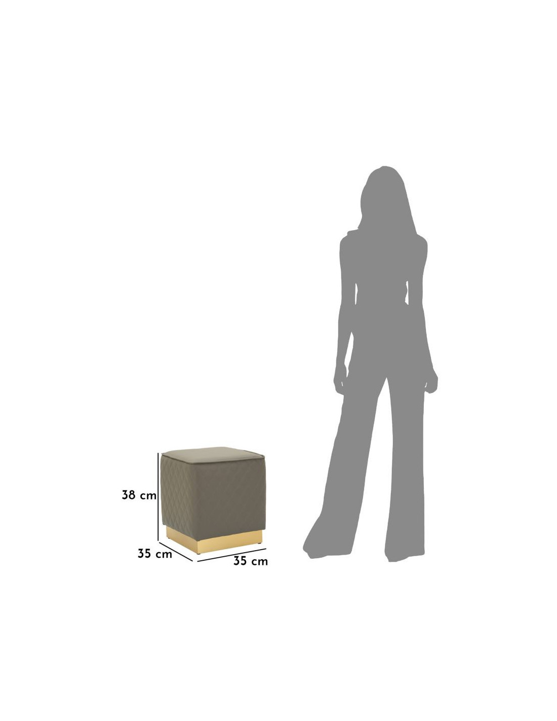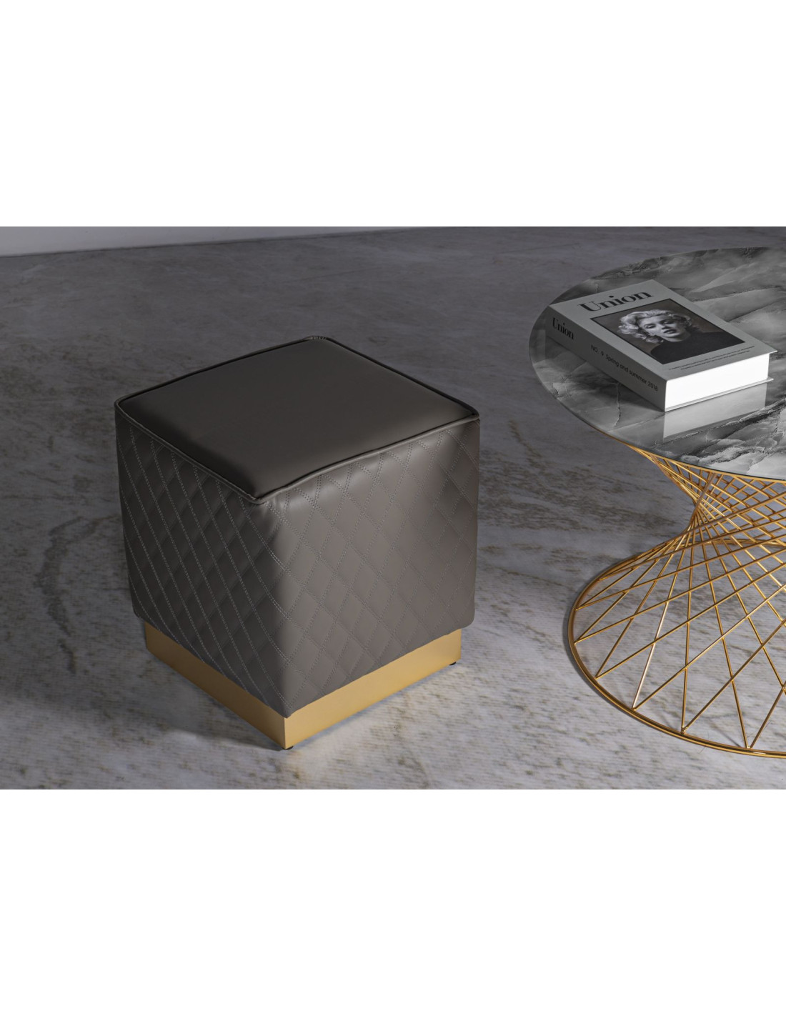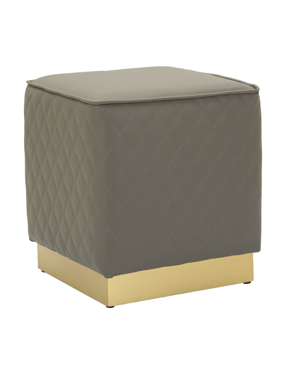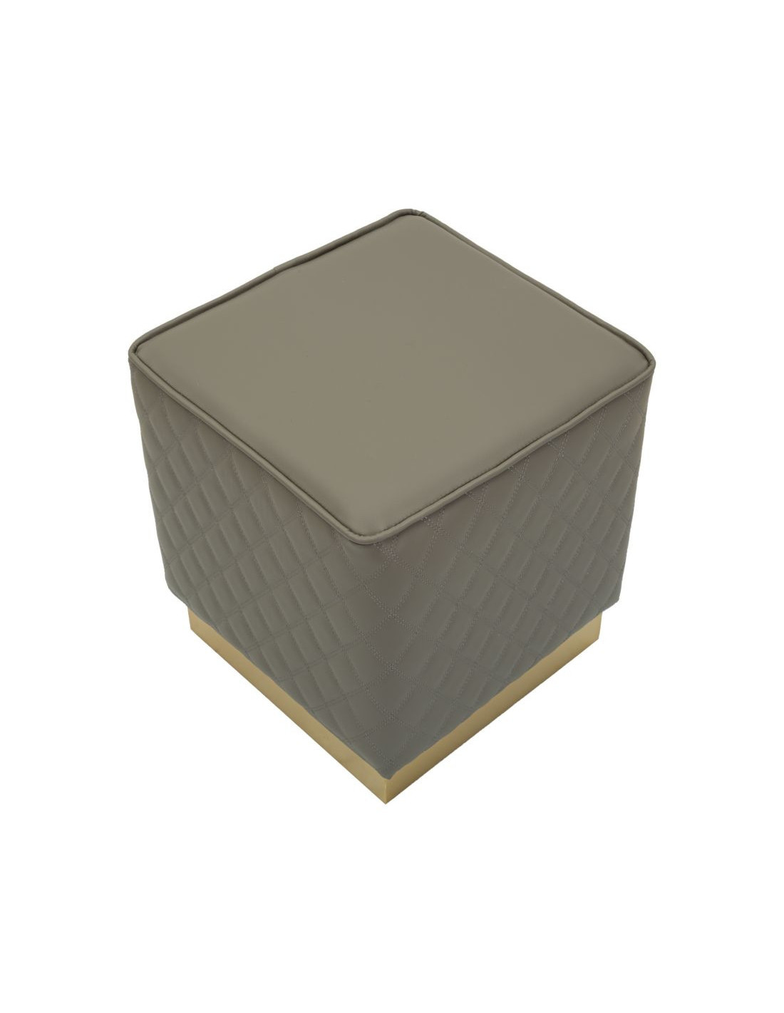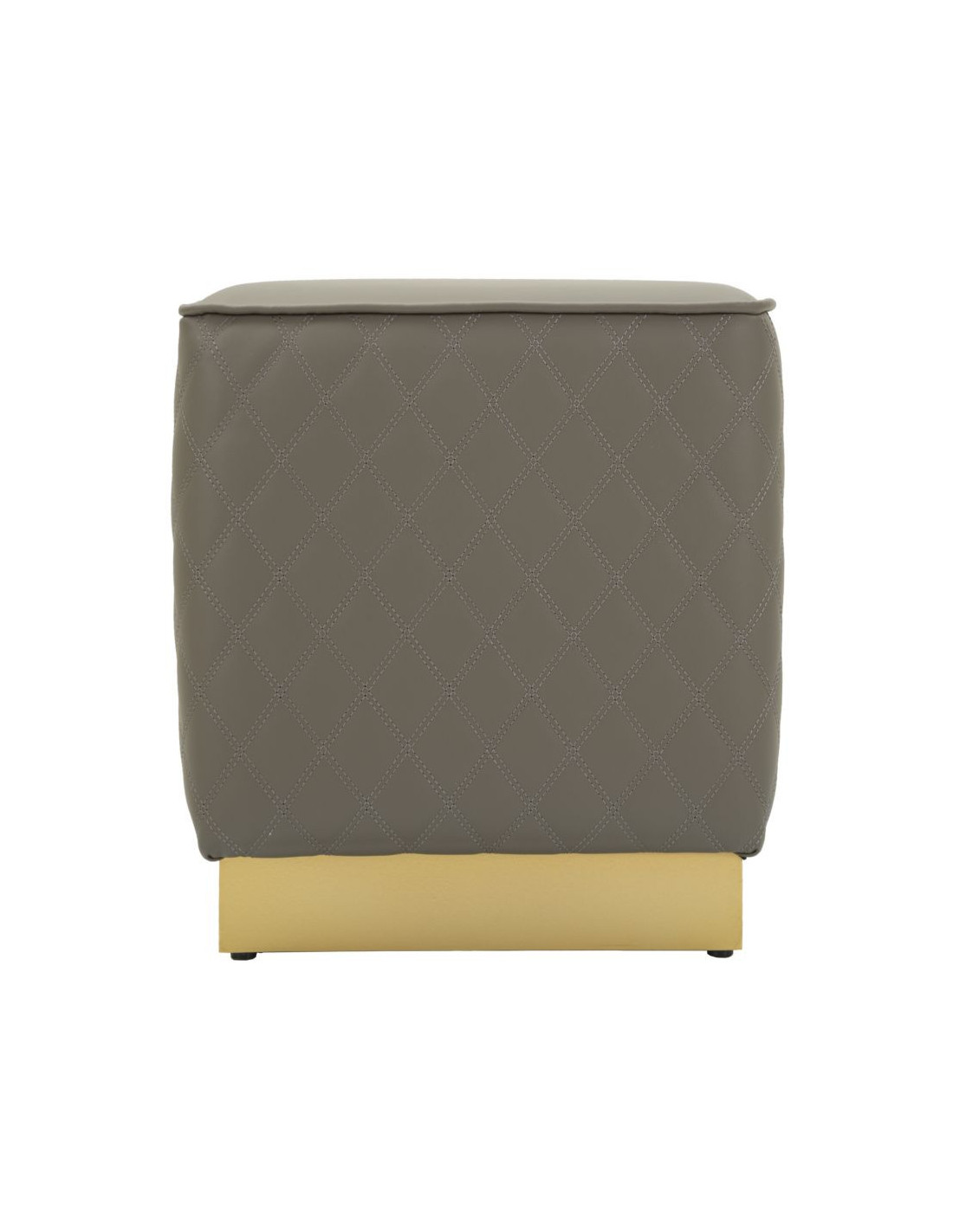 Pouf moderne Carré 35 cm en Polyuréthane Gris Matelassé Bois MDF Métal Doré Sharon
