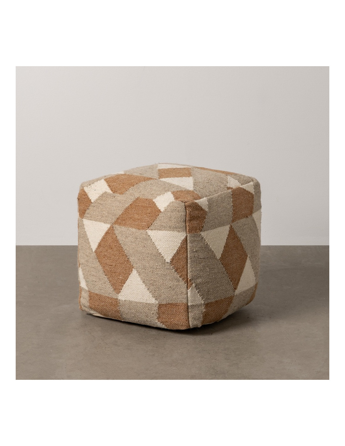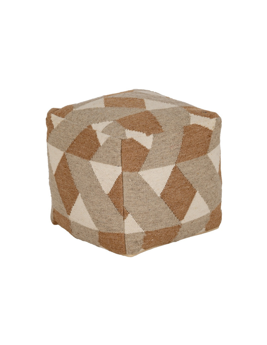 Pouf moderne Carré en Laine Coton Marron Blanc Motif géométrique Gata
