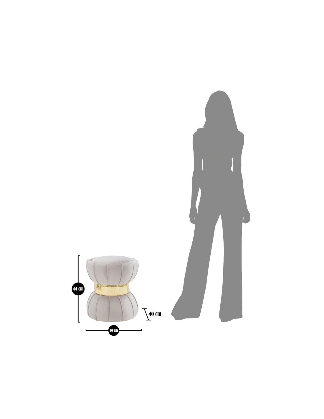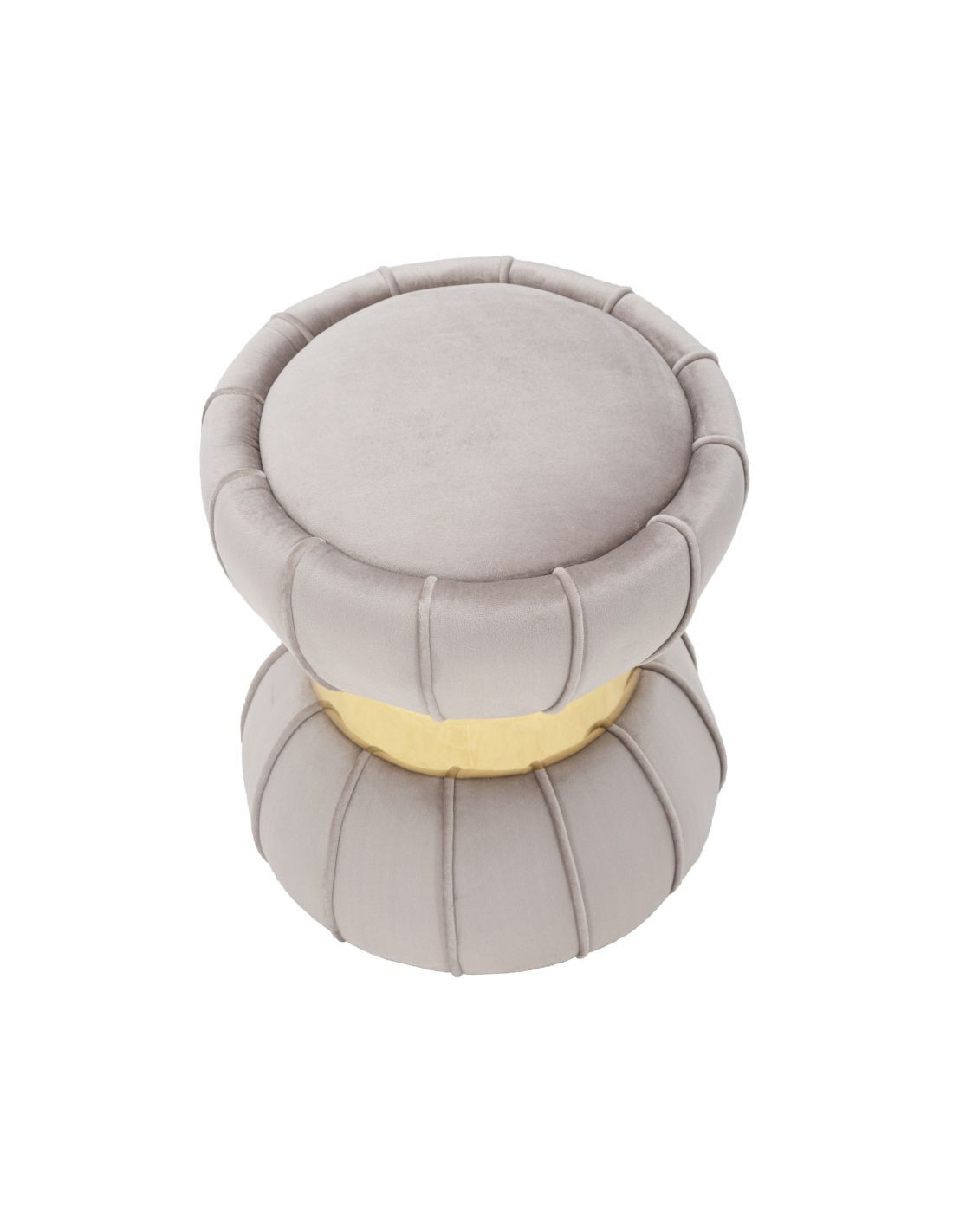 Pouf moderne chic Fleur 40 cm Velours Gris Bois Doré Flower