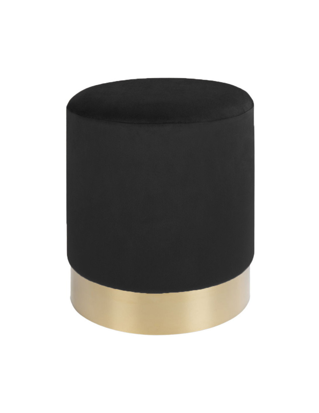 Pouf moderne chic Rond Velours Noir Métal Doré Effet laiton Gamby