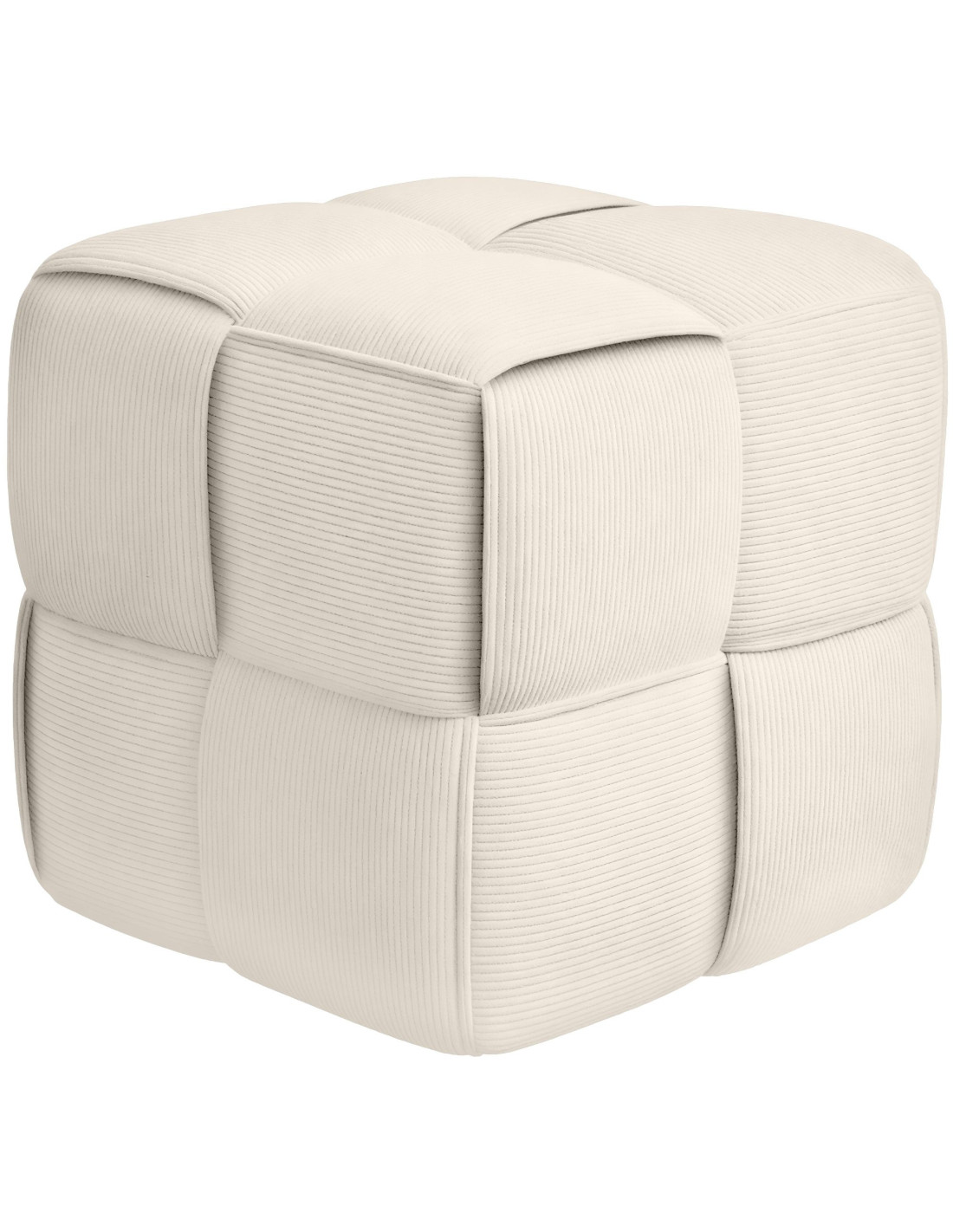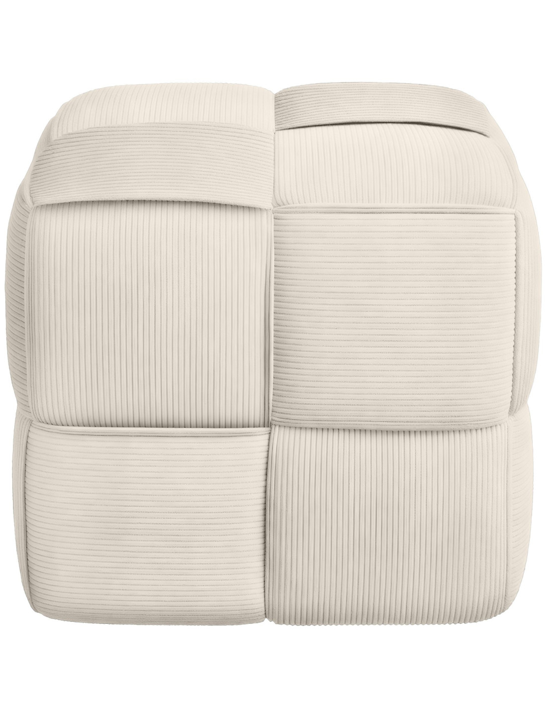 Pouf moderne cocooning Carré 40 cm Velours côtelé Blanc crème Polypropylène Koeli - 1