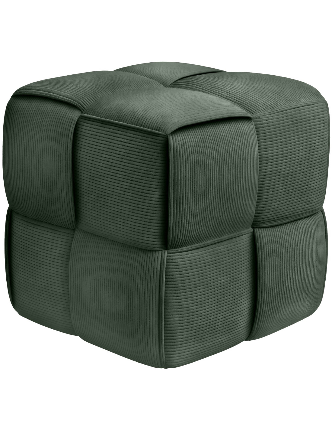 Pouf moderne cocooning Carré 40 cm Velours côtelé Vert foncé Polypropylène Koeli - 1