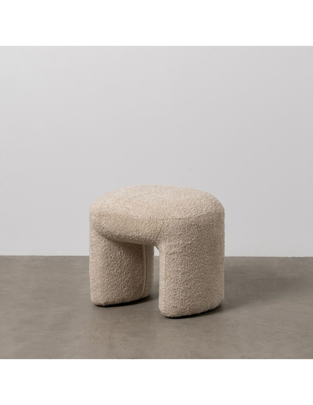 Pouf original Bouclette Ovale en Tissu Beige Bouclé Bois de pin Bloro - 1