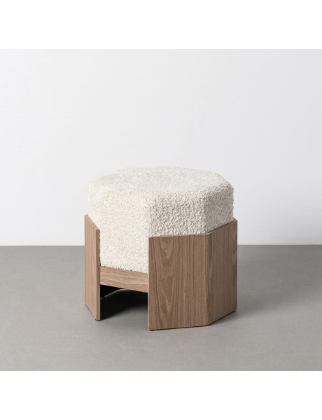 Pouf moderne carré 39 cm en Bois MDF Naturel Placage chêne Tissu Sable Forma